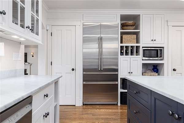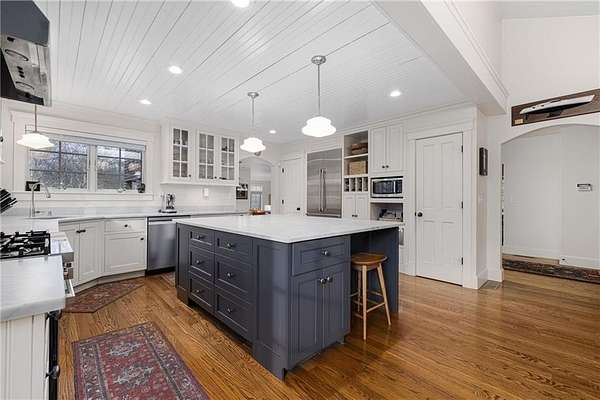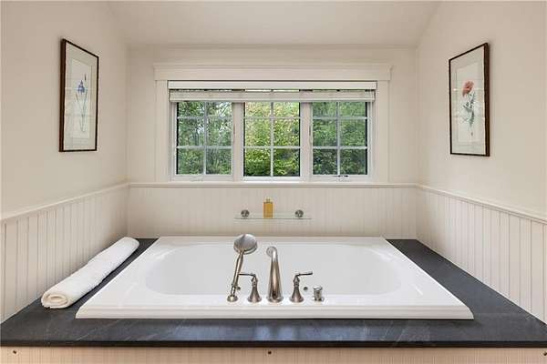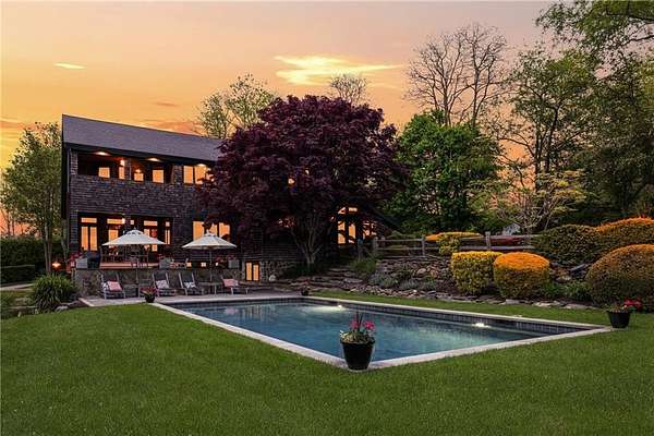 Sited on 2.7 pristine acres just off famed Indian Avenue, this Newport County coastal retreat offers something increasingly rare; true privacy, lush landscaping, and a seamless connection to the outdoors, all just one mile from Middletown's Third Beach and two miles from the heart of downtown Newport. Thoughtfully remodeled throughout, the four-bedroom, three-and-a-half-bath home features a completely remodeled kitchen and a beautifully updated primary bath that elevates the everyday. Nearly every interior room opens directly to a deck or patio overlooking the park-like grounds or the sparkling gunite saltwater pool. The first floor flows effortlessly from the stunning new kitchen with sitting area to a wood-burning fireplace living room and two dining spaces, culminating in a covered porch with sweeping backyard views. The generous primary suite features the newly updated bath, a walk-in closet, and its own private covered porch overlooking the pool. The walk-out lower level adds a fourth bedroom, full bath, dedicated gym, and three-car garage. One mile from Third Beach, the Norman Bird Sanctuary, Sachuest Wildlife Refuge, and Sweet Berry Farm - one of the finest locations on Aquidneck Island.
