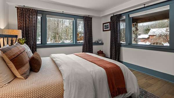 Turner Mill Inn, built in 1936, is one of the oldest ski destinations in Stowe...and in the US. This property was restored by the current owners, beginning is 2020, with great emphasis on fit and finish. The property abuts Stowe Mountain Resort (Vail) and is located at the corner of Mountain Road and Notchbrook Road. Ski home from the top of Stowe Mountain Resort's FourRunner Quad, down the Bruce Trail and walk across the street to Turner Mill. The property also has a stop on the Mountain Road Shuttle for easy access to Stowe Mountain Resort and Stowe Village. What is Turner Mill now? Level 1 and 2: (4) bedrooms (4) baths, kitchen, living rooms, dining room, sitting room...5,155 sq' Level 3: (4) Bedrooms, (3) baths, living room, dining room, kitchen.' Level 4: Suite One (2) bedrooms, kitchen, bath. Suite Two (2) bedrooms, bath, kitchen. Suite Three (2) bedrooms, bath, kitchen. Total Sq' of Level Three and Level 4 is about 1,605sq'. Reference the attached Architectural Drawing Package showing the floorplans and dimensions. These are not as-built drawings. In addition to the restored, renovated and updated Turner Mill Inn there are 9 acres. (4) acres in the Upper Mountain Road Zoning district and (5) acres in the RR-5 Zoning district. The (5) acres in RR-5 are not developed. Reference Survey attached. For summer swimming fun the property has direct access to Foster's Swimming Hole in Notch Brook. This is a popular summer attraction in Stowe.