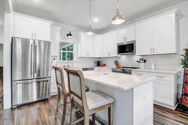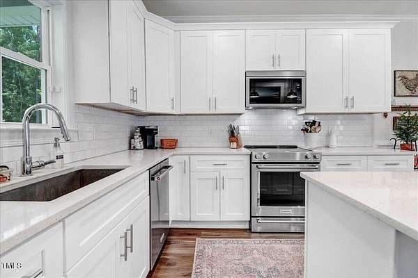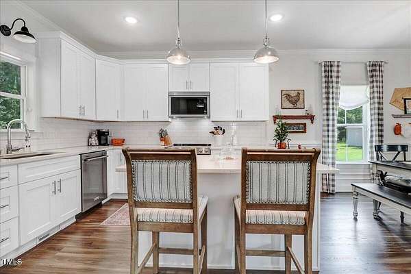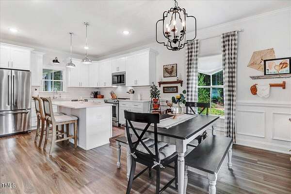 Modern Farmhouse Living MINUTES FROM FLOWERS PLANTATION!! Conveniently located near Downtown Clayton with easy access to I-95 and RDU, this home is also zoned for excellent schools. Set on 1.76 acres in a private cul-de-sac, the property backs to protected woods and wetlands for lasting privacy. Inside, you'll find new KitchenAid appliances (2024-2025), upgraded LVP flooring, and a bright open layout ideal for gatherings. The spacious first-floor primary suite offers a relaxing retreat with a generous walk-in closet. Covered front and side porches provide the perfect spot for morning coffee or evening unwinding. With farmhouse charm, thoughtful upgrades, and a peaceful setting, this home is truly move-in ready for its next chapter.