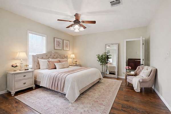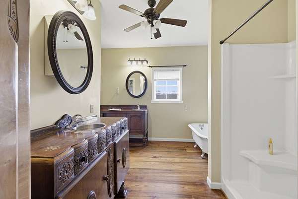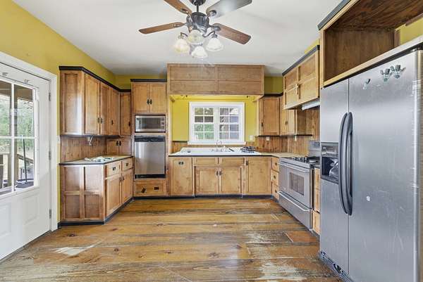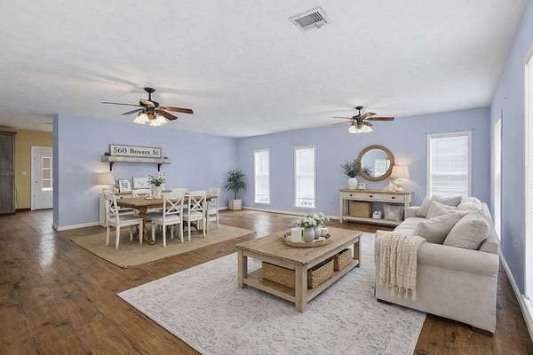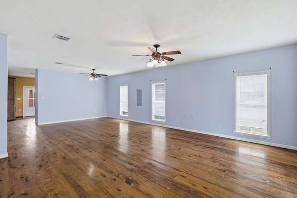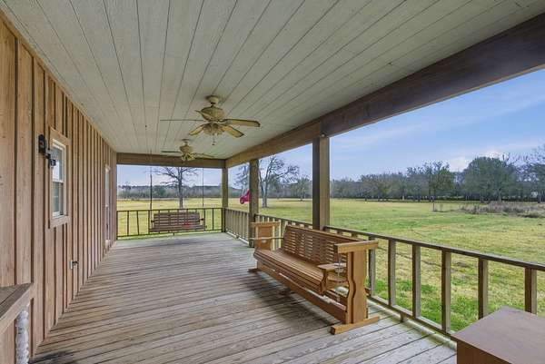 Est $1,340/mo3 bedroom, 2 bath home situated on approximately 2 acres with expansive front and rear covered porches. This property features hardwood floors throughout the main living areas and abundant natural light. The spacious family room serves as a combined living and dining area, offering an open and versatile layout. The primary bedroom includes an en suite bathroom for added privacy and convenience. The additional bedrooms are well-sized with access to a second full bath. Outdoor amenities include a large covered front porch, covered back porch, and open acreage suitable for a variety of uses. Property also includes a barn and covered parking area.