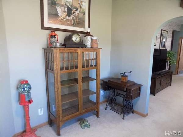 - Bookcases, Country Kitchen, Crown Molding, Custom Cabinetry, Dining/Living Room Combo, Eat-In Kitchen, Kitchen Island