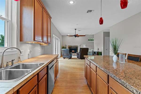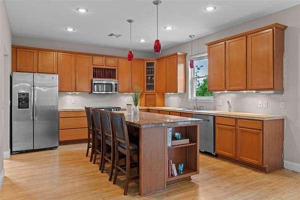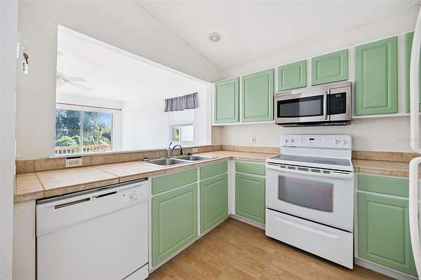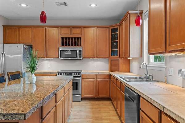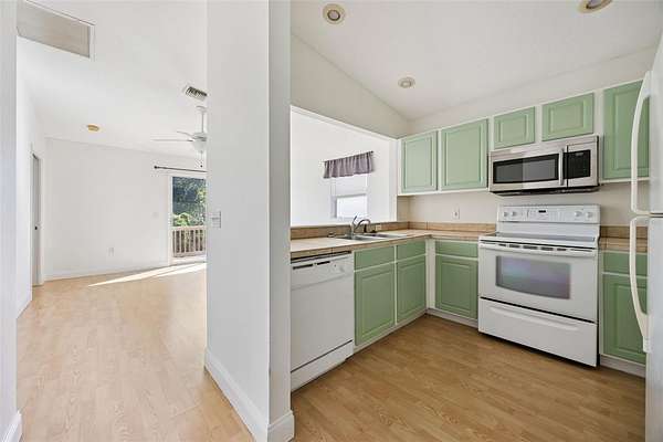 - Ceiling Fans(s), Eat-In Kitchen, High Ceilings, Kitchen/Family Room Combo, Solid Wood Cabinets, Vaulted Ceiling(s), Walk-In Closet(s)