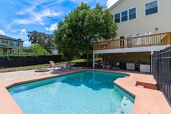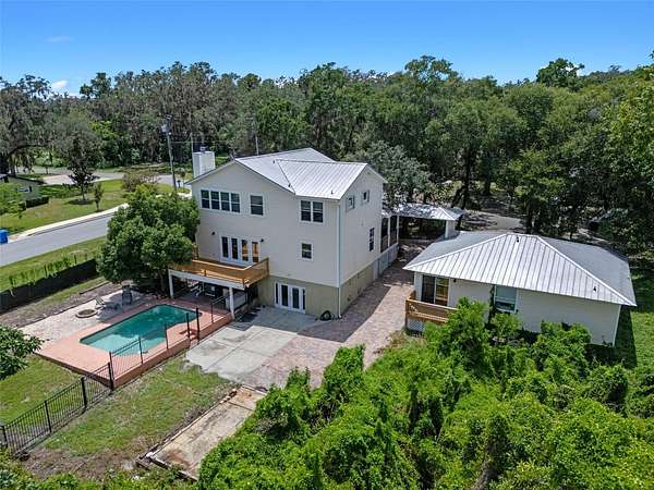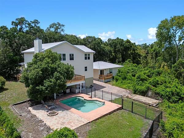 A MULTIGENERATIONAL gem!! NEW ROOF. Located in the HEART of Oviedo just one block from Oviedo on the Park, this stunning 4 bedroom, 3 full bath home comes with a pool and a 1 bedroom, 1 bathroom guest house. Set above an expansive 1.56 acres you can view Kennedy Space Center and SpaceX launches from the french door main level patio and primary suite. First floor features a private office, formal dining, and bonus room that leads to the large eat-in kitchen and family room. This home is also a rare find as it has a basement for extra space. Oversized circular paver driveway, portico and rear parking allow for plenty of room for vehicles, boats, etc. Bring your toys, there is NO HOA. All of the bedrooms are upstairs letting in tons of natural light giving the home an open and breezy feel. Freshly painted, brand new decking, new carpet and new basement door. Guest house has interior laundry and a full kitchen. Quiet secluded street. Schedule your showing and come enjoy this relaxing retreat that is still minutes from the center of town. Tax address is 560 Fern which is the guest house address, Main Home is 564 Fern St