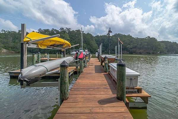 Unique post and beam features floor to ceiling windows and open floor plan, warm wood flooring, walls of glass, plus Geothermal HVAC to achieve the highest level of energy efficiency while benefitting from the unsurpassed coastal setting & creating contiguous open spaces for you and your family to enjoy. Extraordinary Waterfront Point with over 690' of waterfrontage with exceptional wraparound water views of Myer Creek just off the Corrotoman & Rappahannock Rivers. This, coupled with craftmanship detailing, and excellent construction elements creates a distinctive yet timeless design featuring 4 Bedrooms with 5 Full and 2 Half Bathrooms. Chef's Kitchen with Island & Mud/Laundry Room with walk-in pantry, spacious Living and Dining Rooms with see-though Fireplace & wrap-around water views this comfortably stylish home is perfect for entertaining family & friends. Spacious 1st & 2nd level Primary Bedroom Suites, Screen Porch with composite decks and paver patio plus mulch walkway to waterfront firepit with bench seating. Deep Water Dock with over 5.5'+/-MLW, 10,000lb Boat Lift w/ remote, Jet Ski Lift, Floating Dock, Kayak Rack & Fish Cleaning Station w/ Rip-Rap Shoreline. Oversized 2 car Garage with work benches & heat. Enjoy the generous lower level w/ poured concrete foundation walls boasts Great Room with built-in cabinetry & Bar with sink, add'l Bedroom with ensuite Bath. Floor Plans for 3 levels are in photos. Minutes to Yankee Point Marina for fuel & annual family Club membership for access to community swimming pool. No HOA, only road maintenance w/ $150 annual fee.