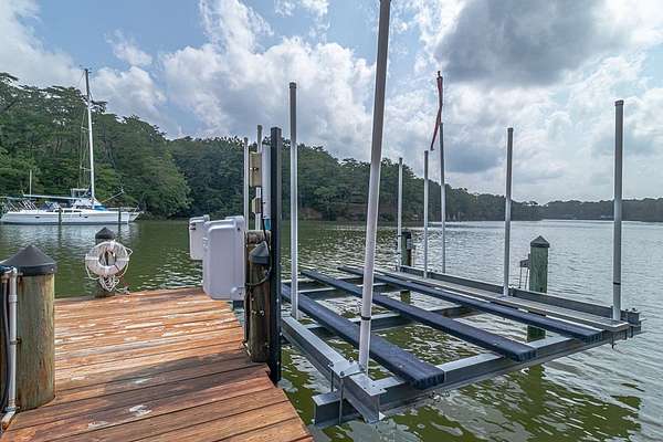 - Boat/Ski Lift(s), Double Pane Windows, Generator, Pier/Dock, River/Creek Front, Screened Porch, Stone Driveway