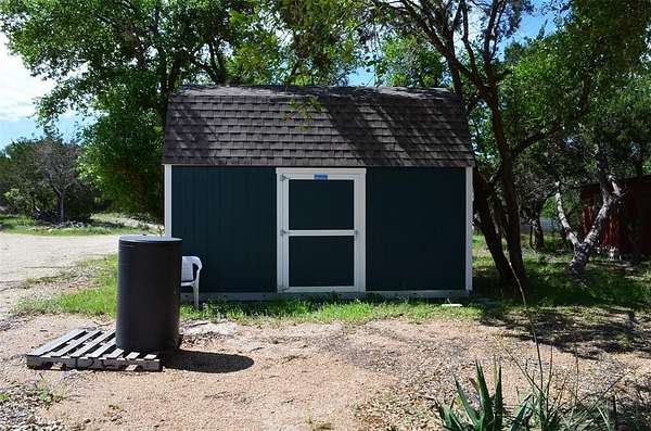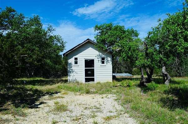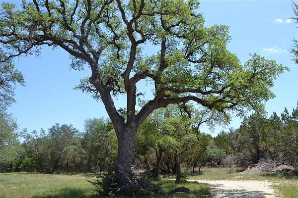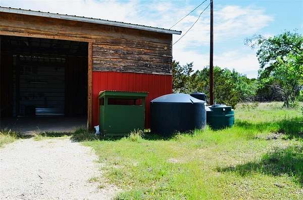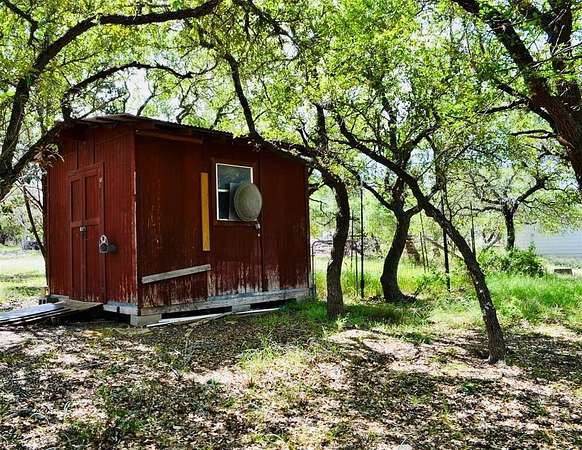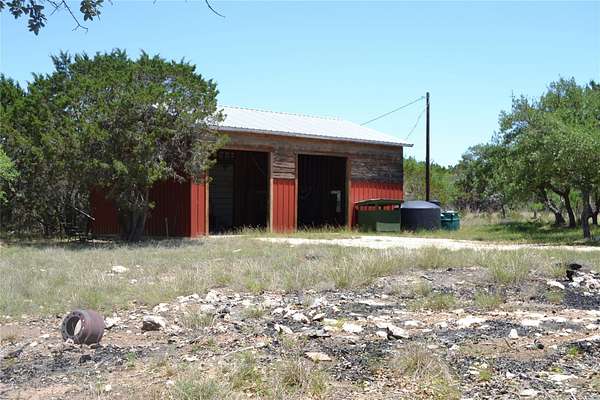Beautiful 5 acre tract with large oaks and long distant panoramic views. Fenced on 3 sides. Back of property ends in middle of the seasonal creek, which flows really well during good rains. Property comes with a large barn/workshop with concrete floors and 2 sheds. This is it folks. One look is all it takes...