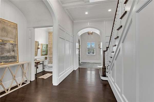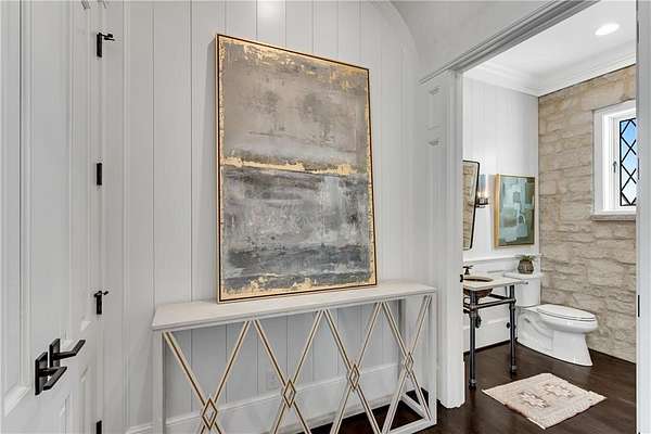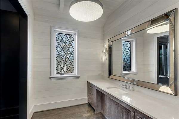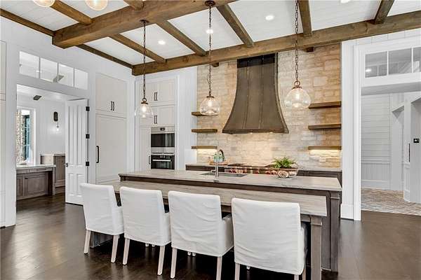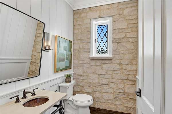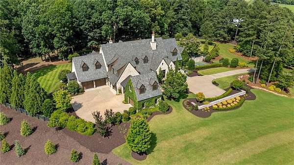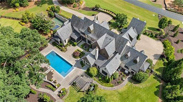 Exceptional property located on 4.58 acres within the exclusive gated community of Rivers Edge in Milton, this stunning all stone estate, adorned with a slate roof, was designed by T.S. Adams Studio. Radiating sophistication and timeless beauty, this stately residence features a commercial-grade elevator, connecting all three levels. Meticulous attention to detail is evident throughout, with the interior presenting a seamless fusion of stone, wood, and brick walls. The Venetian plaster adds a touch of timeless elegance, enhancing the overall atmosphere. The kitchen, a culinary masterpiece, showcases high-end appliances and a secondary butler's kitchen complete with a walk-in pantry. An inviting eating area opens to a panorama of windows framing the view of the pool. Continuing the seamless integration of indoor and outdoor living, the kitchen extends to the family room. French doors create an effortless transition, inviting guests to the pool area. On the main level, an office overlooking the pool and a library flank the path leading to the owner's suite which offers incredible views of the pool. The second floor adds to the opulence with 3 bedrooms and four full baths, providing ample space for family and guests. Convenience is paramount, with laundry rooms on both the main and second floors. The basement adds to the allure with a sauna, temperature-controlled wine room, safe room, family media room, billiard area, and daylight entry to a basketball court. A fenced backyard, coupled with the pool area extending to a side yard, creates an ideal space for various activities, solidifying the estate's commitment to providing a luxurious and versatile living experience. Ample parking is provided, with a porte cochere leading to a motor court and a 4-car garage. This estate is a combination of design, luxury, and functionality, offering a truly exceptional living experience in the prestigious Rivers Edge community.