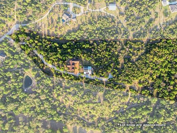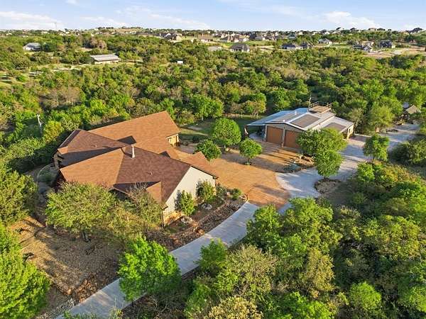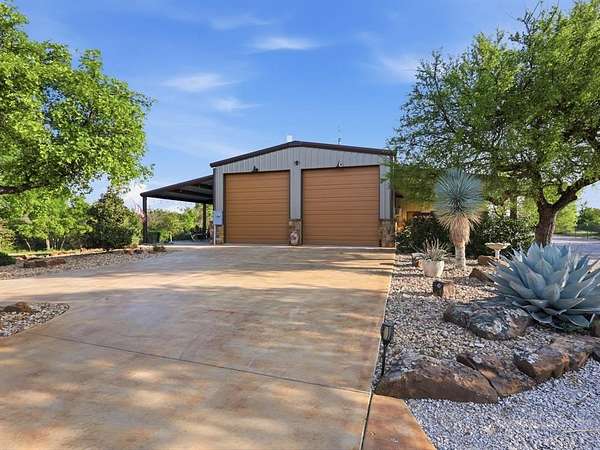 Experience unparalleled privacy and panoramic views from this custom built masterpiece atop 10.6 heavily treed acres. Behind a private gate, a scenic 800 foot winding driveway leads you to a secluded sanctuary where sophistication meets the Texas landscape. This 3,600 sq.ft. residence is thoughtfully designed with special features around every corner. Inside you have expansive living spaces with views from every window. Upon entry, you are greeted by 20ft vaulted ceilings, beautiful wood trusses and a wall of windows with breathtaking views. It’s the best kind of entrance. The kitchen is truly the heart of the home featuring white oak cabinetry, a custom vent hood, 11ft island, high end appliances, and a large walk in pantry. The split bedroom floor plan features 3 bedrooms, including a bunk room with 4 twin beds, 2.5 bathrooms, a media room and a stately library with 10ft tall bookcases, sliding ladders and more amazing views. The primary suite is tucked away in the trees at the back of the home giving you the perfect place to unwind. The ensuite is a work of art with unique petrified wood vessel sinks and a volcanic limestone freestanding tub as focal points. This home is a fully automated Smart home to allow for convenience and safety from home or away. Also includes a massive multi-use shop, complete with RV-boat storage, a woodworking area, a mezzanine, a craft room with a full bathroom and an observation deck to take it all in. The shop has a 15ft overhang on each side for equipment storage on one side and a covered patio on the other. Gardening enthusiasts will marvel at the fully automated, commercial-grade greenhouse featuring advanced irrigation and climate control. This isn't just a home; it’s a private estate designed for those who demand excellence.