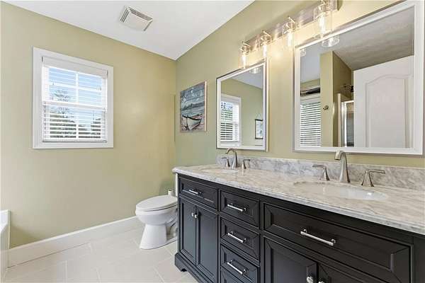 This inviting 5-bedroom, 3-bath split-level home blends comfort and flexibility with multiple living areas perfect for families, multi generational living, or anyone craving room to spread out. The upper level offers three bedrooms including the spacious primary suite with double vanities and a separate tub and shower. Downstairs, you'll find two more flexible rooms and a full bath ideal for guests, an office, or a hobby space.