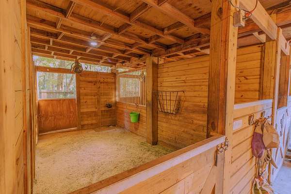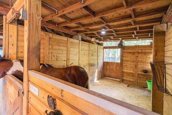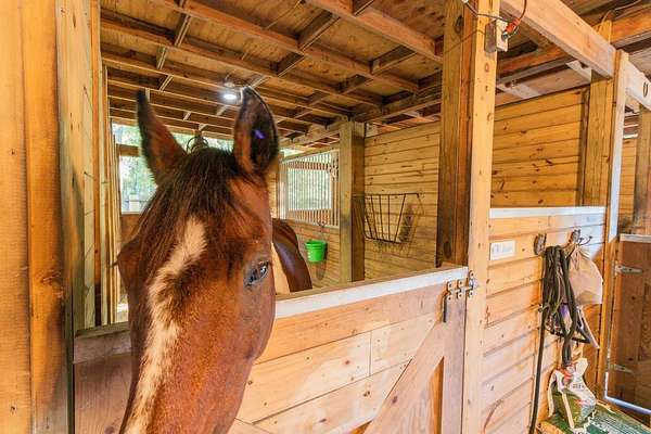 Equestrians will love the well-equipped barn with electric and water, complete with 4 horse stalls, a tack room, wash rock and a spacious paddock that can easily be divided into two separate areas.