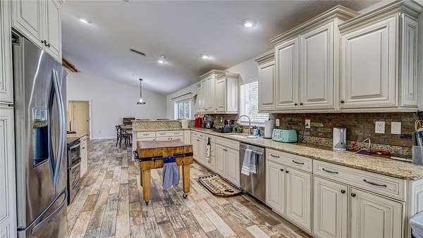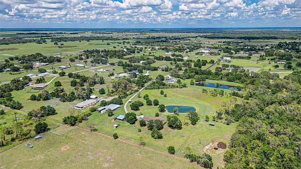 SAY HELLO TO PRIVACY!!! Bring Your Horses or Cows! This is a Hard to find secluded 10 acre estate located just 8.5 miles from I-75 and a short drive to the World Famous Siesta Key Beach! NO HOA or CDD! Zoned OUE1 gives you LOTS OF OPTIONS!! The House was Built in 1998, renovated in both 2013 and 2018, and was just RECENTLY PAINTED. This home overlooks a stocked fishing pond with a wooden dock and built-in Adirondack chairs. Plenty of space for animals and horses. This custom built home in a lovely neighborhood was, according to the previous owner, built to have a second floor added if desired. With over 3,000 square feet under air, it is a very practical open house layout with vaulted ceilings and panoramic views from every window and patio of pasture, ponds, woods and there are no other houses in sight! The front screen enclosed porch also has a spa. The rear brick-paver patio faces west offering amazing sunsets over the pastures and visiting wildlife. The Oversized Garage/Barn is Large Enough for a Car Collection or to Store Tractors and Farm Equipment. It also has a Fully-Equipped Air Conditioned Gym. The home has many upgrades as well such as granite countertops, simulated wood plank tile floors, stainless appliances, custom solid wood cabinets, breakfast bar, and decorative stone fireplace. The SPLIT BEDROOM plan has a spacious master bedroom with walk in closet and jetted tub. The other two bedrooms with walk-in closets are on the other side of the living room with the second bath. There is a man cave/game room with a bar for parties and events or just watching the game on a Sunday with friends. Laundry room with storage is located off of the kitchen. Other structures on site include an oversized metal barn/garage/workshop, RV site/carport, storage shed, detached well-lit 2-car carport, a 2-car carport attached to the house, and chicken coop. This property is completely hidden from the main road making it VERY PRIVATE! Make an appointment today!!