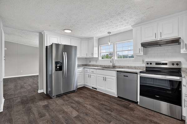 Est $1,447/moUpdated 3-bedroom, 2-bath home situated on approximately 12.60 acres. Interior features include luxury vinyl plank (LVP) flooring throughout, updated finishes, and a modern open-concept floor plan. Kitchen offers new appliances and flows seamlessly into the main living area, ideal for everyday living and entertaining. Property provides a blend of updated interior space and ample acreage.