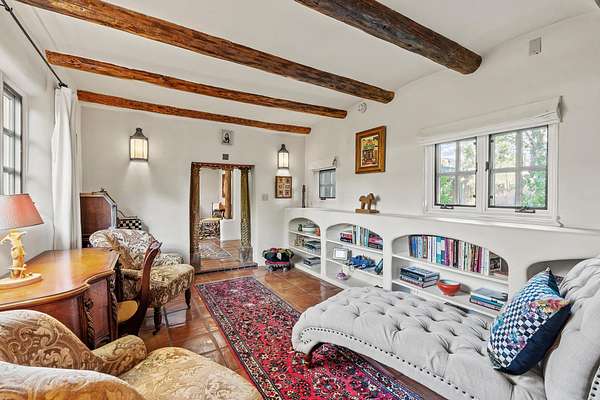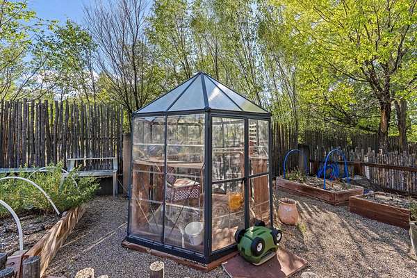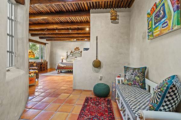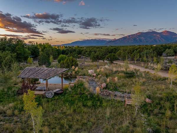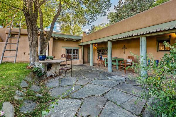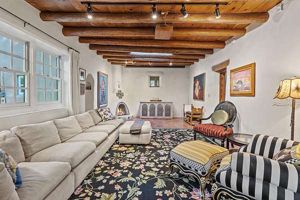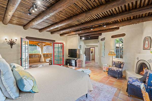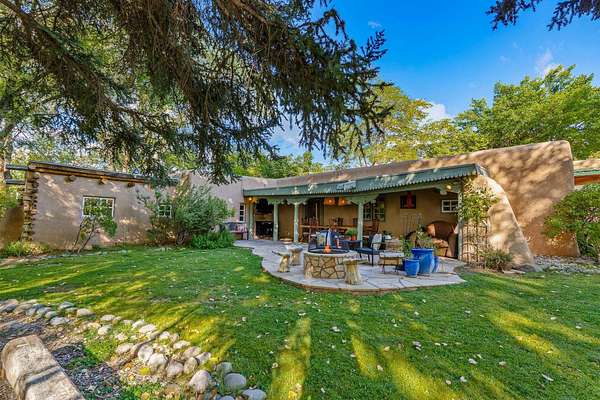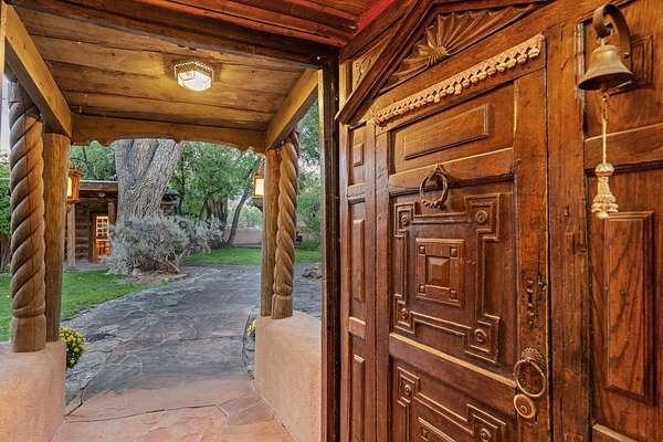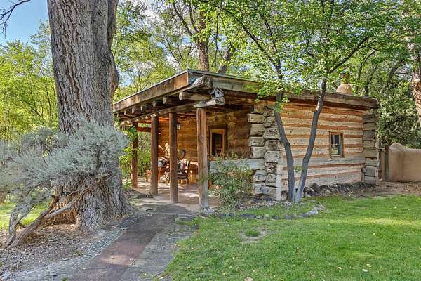 Historic John Young-Hunter Home & Artist's Compound, Taos, New Mexico Private and secluded yet just minutes from town, this rare historic compound is one of Taos' true treasures. Set on 5.17 serene acres with towering shade trees, inviting courtyards, and lush gardens, the property includes a gracious main residence and two guest cottages-a sanctuary for those who value heritage, artistry, and timeless New Mexico beauty. The acreage is fully fenced and thoughtfully designed to welcome four-legged companions-bring your horses, goats, mini-donkeys, or dogs. A charming 3-stall barn with walkouts makes the property ideal for equestrian or hobby-farm living. The John Young-Hunter House began in the early 1880's as simple adobe rooms and a log cabin, expanded and lived in over two centuries by a succession of owners, most notably John Young-Hunter, the celebrated Scottish portrait artist who called Taos home for more than fifty years. Part of the legendary circle of artists, writers, and visionaries drawn to Taos beginning in the mid-19th century, Young-Hunter was a close friend of Mabel Dodge and Tony Luhan, who helped him find this two-hundred-year-old adobe soon after his arrival in 1917. Young-Hunter transformed the property with the help of fellow artists: Nicolai Fechin carved decorative doors, lintels, and columns; Leon Gaspard designed and forged the distinctive ironwork and gates; and Henry Mercer, founder of the Moravian Pottery in Pennsylvania, contributed prototype tiles that are still visible today. Young-Hunter himself added painted details, including the Scottish thistle and family coat of arms on the west portal. Fully restored to provide modern amenities while retaining its historic soul, the home offers rich character and artistic provenance rarely found in today's market. The small south side studio, believed to be Young-Hunter's original workspace, has been sensitively modernized. Historic estates of this significance are seldom offered for sale. This is a remarkable opportunity for the discerning buyer seeking a home deeply woven into the artistic legacy of Taos-a cabin built in approximately 1850. NOTE: Fires in fireplaces and outdoor fire pits are virtually staged. Main House: Cabin: Casita: