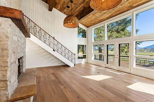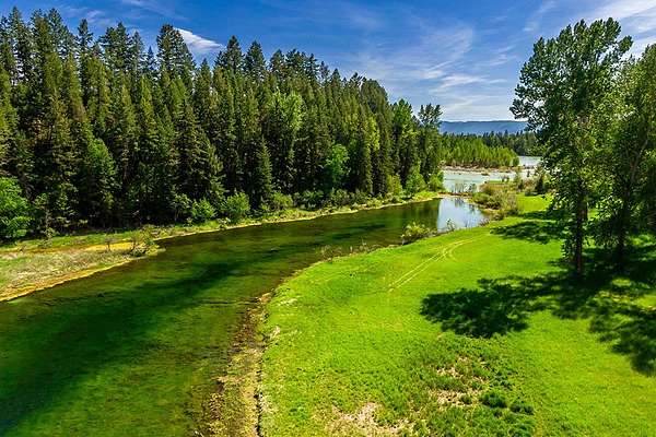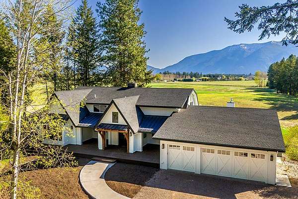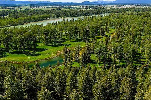 Flowing gracefully from a forested ridgeline, a gently curving access road leads to more than half a mile of coveted Flathead River frontage-an extraordinary 168-acre expanse of backwater channels, rolling meadows, and mature forest that feels worlds away, yet sits just minutes from the valley's core amenities. Perched above a quiet alfalfa field, the main residence is a modern farmhouse that marries reclaimed timber with organic textures and timeless craftsmanship. Sunlit interiors open from a chef's kitchen into warm, airy living spaces, a cozy den, and a serene primary wing. Upstairs guest rooms, a separate 2-bedroom guesthouse, a heated shop, and a spacious hay shed provide versatility for extended family, caretakers, or creative pursuits. Whether envisioned as a private retreat, multi-generational estate, or long-view investment, this is a rare generational holding, where privacy and possibility meet at the gateway to Glacier National Park.