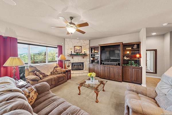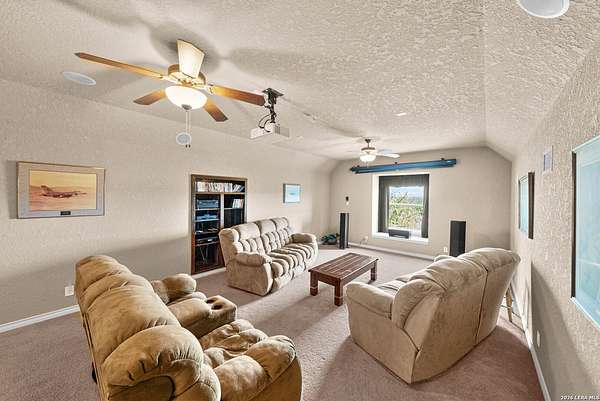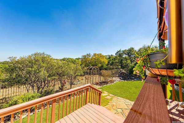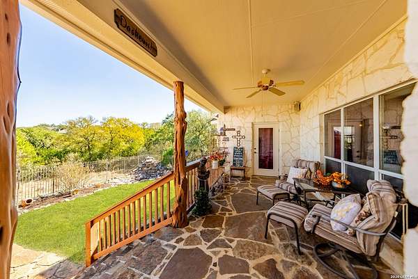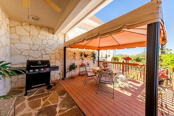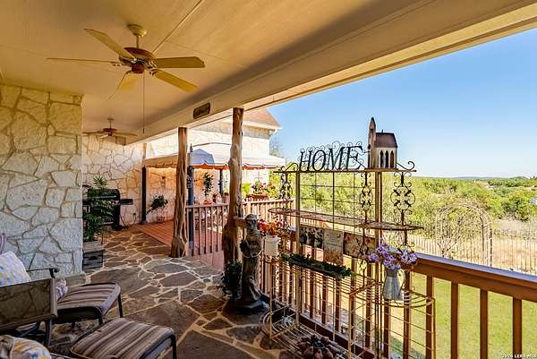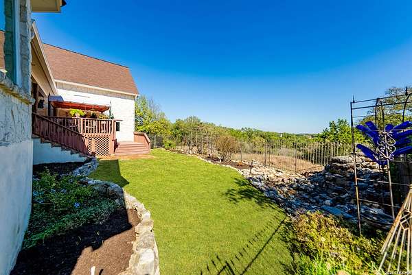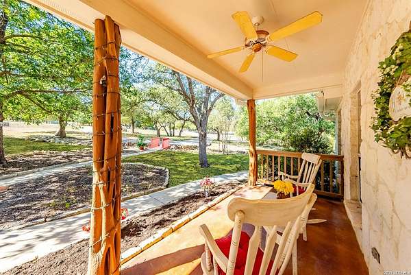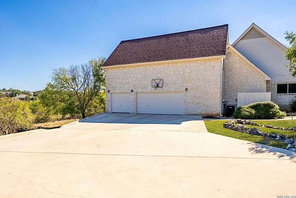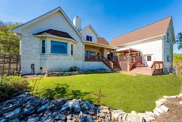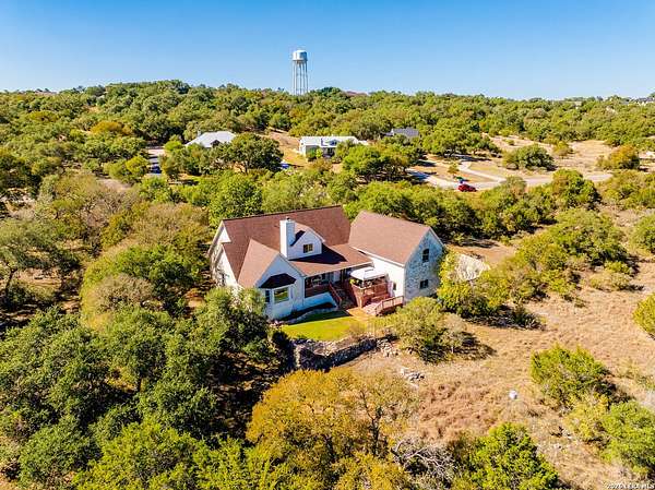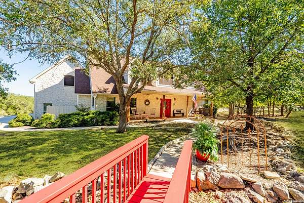 Experience the best in Texas Hill Country resort-style living in River Chase. This thoughtfully designed custom home is nestled among mature oaks on 3.78 private acres, with exclusive access to a private community river park on the Guadalupe River. This thoughtfully designed custom home is nestled among the mature oak on rare 3.78 acres, offering the perfect blend of rustic serenity and modern elegance. From the circular drive and inviting front porch to the expansive back deck, every detail invites you to slow down and enjoy the view. The heart of the home features a spacious living area and a chef's kitchen with an eat-in nook. Wall-to-wall windows frame panoramic views of the rolling Texas Hill Country. The versatile floorplan is unique, offering a primary retreat and a full guest suite conveniently located downstairs, and upstairs hosts two additional spacious bedrooms and upstairs retreat area. The "Flex" Wing: A private third wing above the garage houses an expansive media/bonus room with a half bath-perfect for a home cinema, gym, or a 5th bedroom. Enjoy your Outdoor Oasis: Relax on the deck to witness breathtaking sunsets and the quiet beauty of nature. The property offers ample guest parking and a 3-car garage with workshop area. Enjoy exclusive access to a private Guadalupe River park, resort-style pool, clubhouse, fitness center, tennis, sports courts, miles of jogging/biking/hiking and nature trails, along with community social events and a memorial park honoring our veterans. Minutes from modern day conveniences of HEB, premier shopping, local favorite dining, Canyon Lake, our 4 rivers, Historic Gruene, downtown New Braunfels, top-rated Comal ISD, medical and easy access to IH35 for commutes to San Antonio, San Marcos, and Austin. Come experience TX Hill Country living at its best here in River Chase.