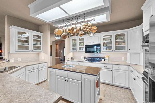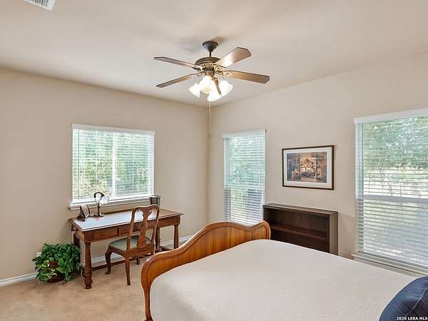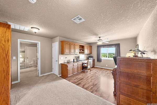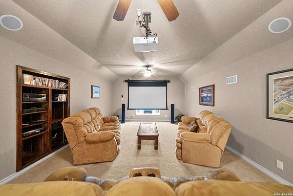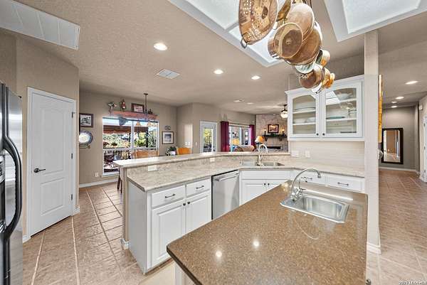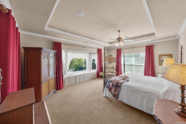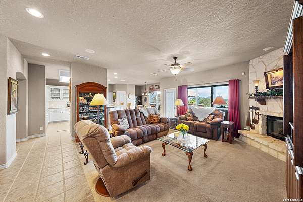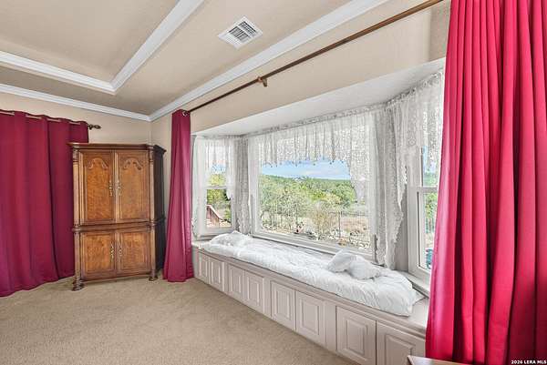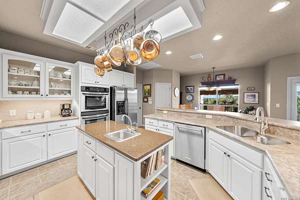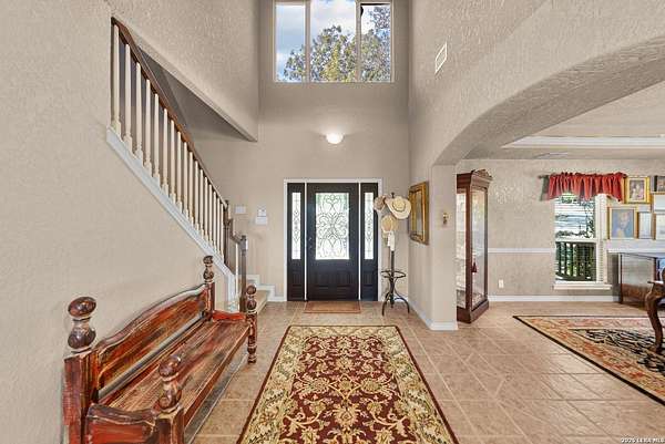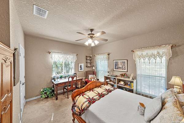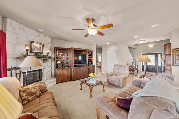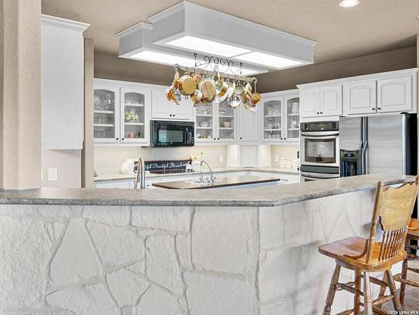 Experience the best in Texas Hill Country resort-style living in River Chase. This thoughtfully designed custom home is nestled among mature oaks on 3.78 private acres, with exclusive access to a private community river park on the Guadalupe River. This thoughtfully designed custom home is nestled among the mature oak on rare 3.78 acres, offering the perfect blend of rustic serenity and modern elegance. From the circular drive and inviting front porch to the expansive back deck, every detail invites you to slow down and enjoy the view. The heart of the home features a spacious living area and a chef's kitchen with an eat-in nook. Wall-to-wall windows frame panoramic views of the rolling Texas Hill Country. The versatile floorplan is unique, offering a primary retreat and a full guest suite conveniently located downstairs, and upstairs hosts two additional spacious bedrooms and upstairs retreat area. The "Flex" Wing: A private third wing above the garage houses an expansive media/bonus room with a half bath-perfect for a home cinema, gym, or a 5th bedroom. Enjoy your Outdoor Oasis: Relax on the deck to witness breathtaking sunsets and the quiet beauty of nature. The property offers ample guest parking and a 3-car garage with workshop area. Enjoy exclusive access to a private Guadalupe River park, resort-style pool, clubhouse, fitness center, tennis, sports courts, miles of jogging/biking/hiking and nature trails, along with community social events and a memorial park honoring our veterans. Minutes from modern day conveniences of HEB, premier shopping, local favorite dining, Canyon Lake, our 4 rivers, Historic Gruene, downtown New Braunfels, top-rated Comal ISD, medical and easy access to IH35 for commutes to San Antonio, San Marcos, and Austin. Come experience TX Hill Country living at its best here in River Chase.