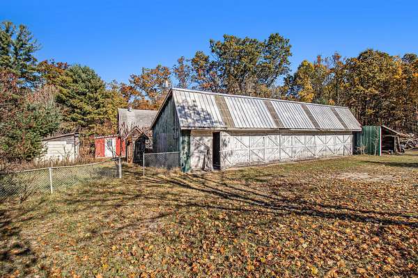 Home with HUNTING LAND on 19.75 ACRES with 4+ Outbuildings, woodshop, Dedicated Auto-Shop Garage with Hoist, OIL CHANGE BAY, livestock shed, fenced garden, great fishing on 600'+ of CEDAR CREEK, deer blind, almost 20 acres fully fenced, RV service bay, MASSIVE indoor storage for multiple cars, boats, campers and more!!! Must be seen to fully appreciate, this solid home has been in the same family for 75 years and can now be yours, it is being sold AS-IS by an estate. 2 parcels, 1.48 acres and 18.27 acres totaling 19.75 acres, schedule your showing today!