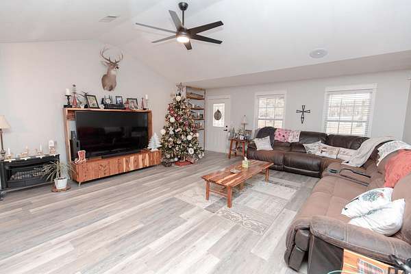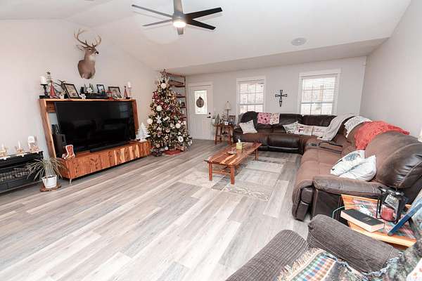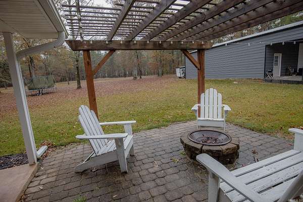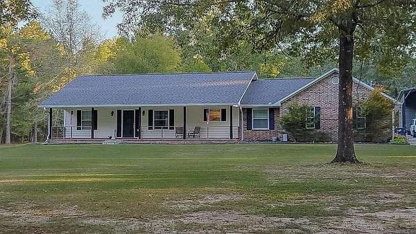 Welcome to peaceful country living on 4 beautiful acres -- complete with a spacious 4-bedroom, 2-bath brick home and an impressive 30x60 shop with RV/boat storage. Built in 2004 and thoughtfully updated throughout, this property blends modern comfort with charm and privacy. Inside, you'll find over 2,100 sq. ft. living space. The home features new flooring, a newly remodeled kitchen and bathrooms, and a bright, open layout with a large living room and vaulted ceiling. The kitchen showcases granite countertops, a nice pantry cabinet, rock accents on the island, and a nice new backsplash. The split floor plan includes a spacious primary suite with a double vanity, jetted tub, walk-in, tiled shower, and a massive walk-in closet with built-ins. Three additional bedrooms provide flexibility for family, office space, or guests. Major updates bring peace of mind, including a roof & HVAC less than 2 years old. Enjoy mornings on the wide front porch with farmhouse-style railing, or relax on the extended back patio featuring a pergola, swing, and a perfect fire-pit entertaining area. 30x60 shop is a dream: multiple bays, walk-through door, tall clearance for RVs or equipment.