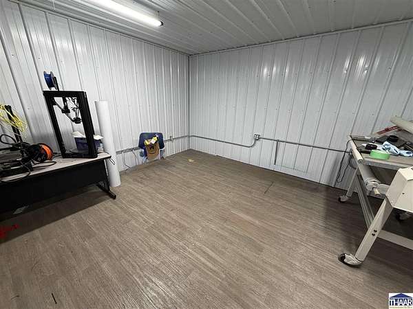 Est $5,126/moOver 7 acres of commercial/industrial real estate. Located in northern Vigo County, easy access to Hwy. 41. 8400 sq.ft post frame warehouse built in 2022. 18'ceilings. 5 16'x16' overhead doors. 4 exterior main doors to shop area. 1 main entry door to office area. ADT security system and cameras. Single phase electric can include 3 phase rotary converter if negotiated. Heat and AC in office area. Shop area has heat. Upper area in warehouse/shop area for storage or additional work space. Outbuilding is 2300 sq.ft. Property is on city sewer, private well.