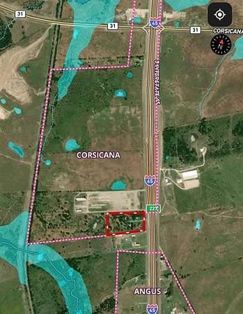 Prime Opportunity to Acquire just under 6 Acres of IH45 Frontage for your growing business or investment portfolio!! This property sits on the IH 45 service road that allows for 2 way travel both North and south past the property. Great visibility from the Highway! Sitting just outside the city limits of both Corsicana and Angus, helps the appeal for easy development and flexibility on future use. Bordering the property directly to the north is the 160 Acre master planned IH45 Industrial park, bringing growth and industry to the area. This location and ease of access from both IH45 and Highway 31 would be perfect for any type of shop space needing a yard, light industrial & flex warehouse space, but certainly not limited to any of those uses and is here for your business and ideas. Property currently has a Billboard lease in place for immediate income, term is up in 2026, so the new owner can choose to renegotiate or terminate the agreement. Great property, Great location, and easy to develop!