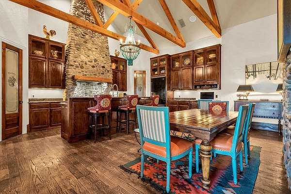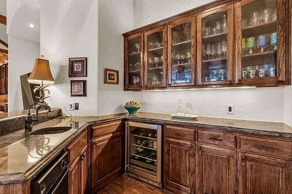 - Built-In Features, Built-In Wine Cooler, Decorative Lighting, Flat Screen Wiring, Granite Counters, High Speed Internet Available, In-Law Suite Floorplan, Natural Woodwork, Pantry, Second Primary Bedroom, Smart Home System, Sound System Wiring, Vaulted Ceiling(s), Walk-In Closet(s)