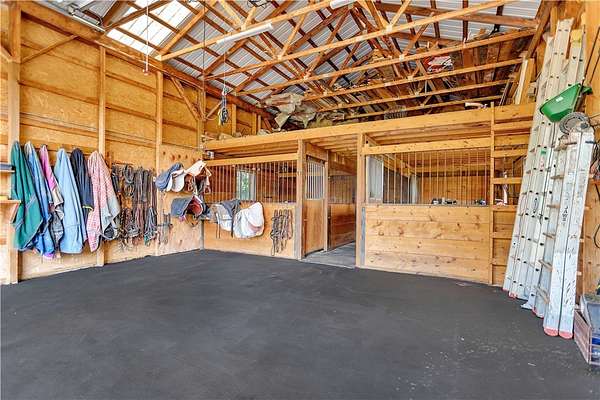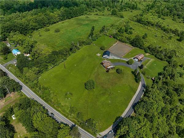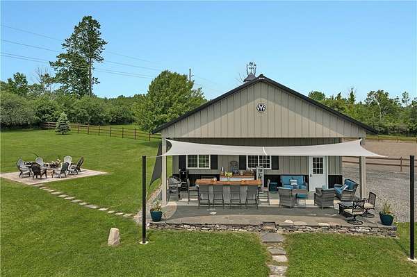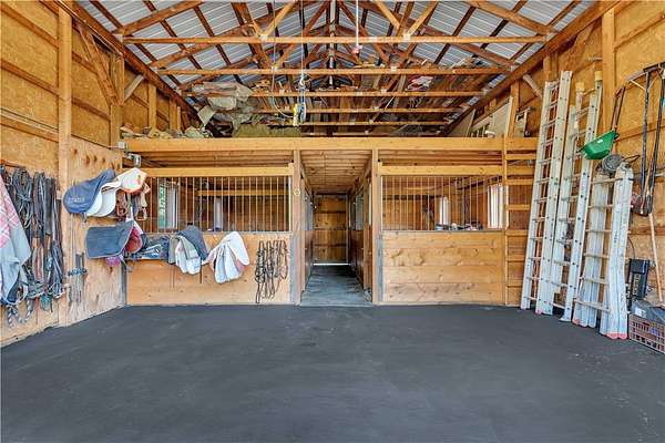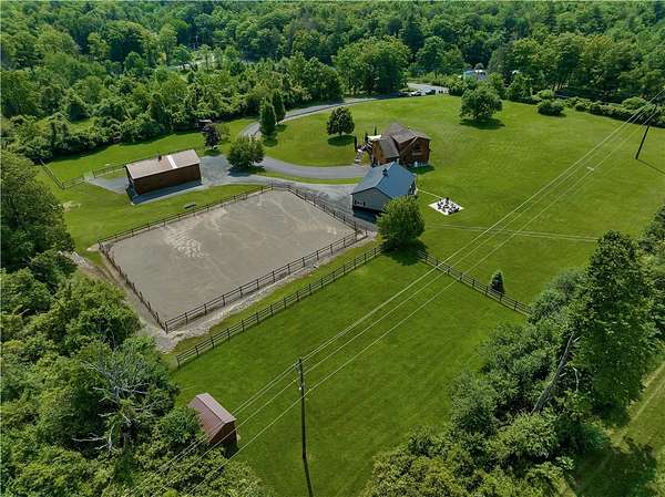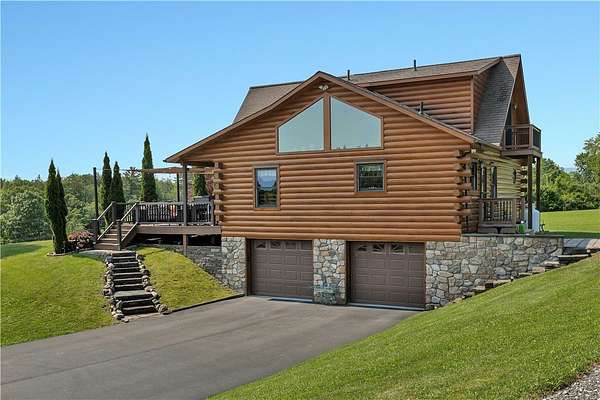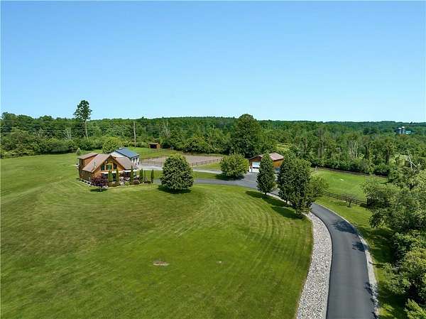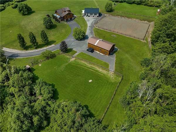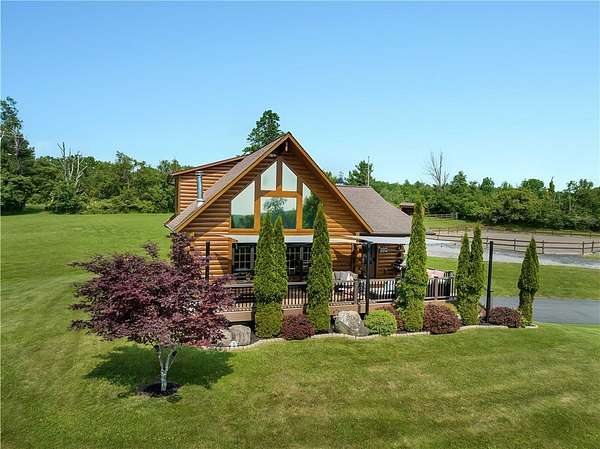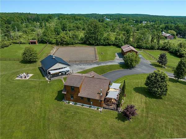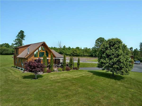 Experience the ultimate in upscale country living at this custom-built log home, perfectly nestled on over 12 private acres. A long, winding driveway leads you to a secluded sanctuary where not another house is in sight, providing unparalleled tranquility and privacy. This property is a quintessential haven for the discerning equestrian. It boasts a meticulously maintained 4-stall barn with a spacious hay storage loft, designed for efficiency and comfort. Beyond the barn, a dedicated outdoor arena awaits your training and riding sessions, complemented by two well-established, expansive pastures, each featuring convenient run-in sheds to shelter your cherished equine companions. This is more than just land; it's a fully equipped equestrian estate ready for immediate enjoyment. Step inside the beautiful 3-bedroom, 2-bath residence and be captivated by soaring vaulted ceilings and a dramatic window wall in the living room that floods the space with natural light and frames breathtaking views. A cozy gas fireplace adds warmth and ambiance. Beneath the home, a heated two-car garage features an EV charger, blending rustic charm with modern convenience. Outside the main residence, stone steps from the paved driveway lead to a welcoming deck, an ideal spot to savor the peaceful ambiance. Adding to the property's incredible versatility is a separate, never-used Morton building with extra tall garage doors. This pristine structure sits on a durable concrete pad with Polyurea floors and is fully equipped with electricity and water, presenting an ideal space for extensive storage, a professional-grade workshop, or any additional hobby pursuits. Outdoor living is elevated with a dedicated outdoor kitchen and a charming firepit, perfect for entertaining under the stars. This property isn't just a home; it's an unparalleled lifestyle opportunity for the horse-owning family who desires every amenity and the ultimate in private, luxurious country living. Centrally located only 30 Minutes to Windham and Hunter Mountains and to Amtrak Hudson. 45 Minutes to HITS and 60 Minutes to Saratoga.