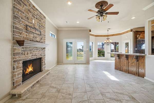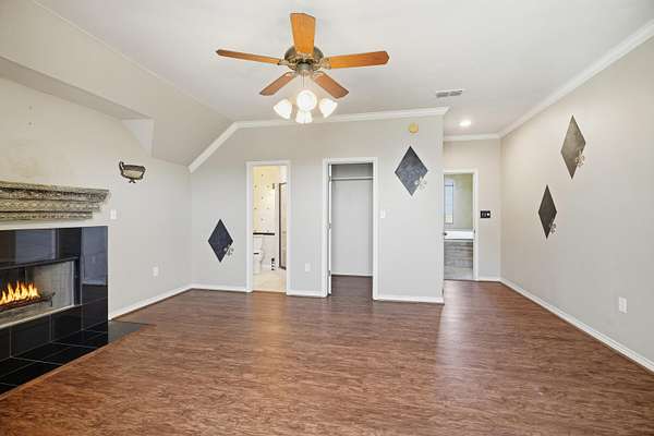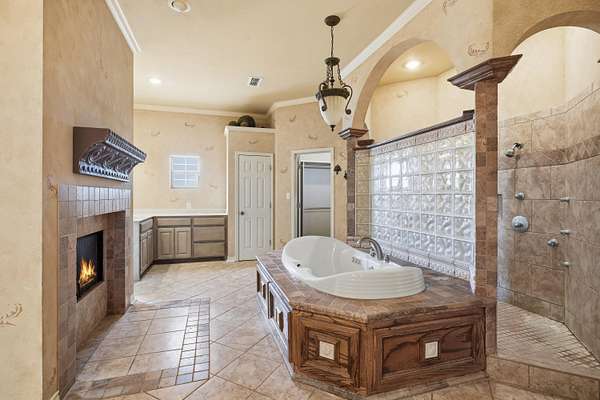 - Ceiling Fan(s), Double Vanity, Entrance Foyer, Granite Counters, High Ceilings, His and Hers Closets, Kitchen Island, Pantry, Primary Downstairs, Walk-In Closet(s), Wet Bar