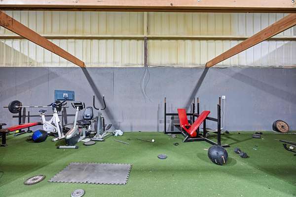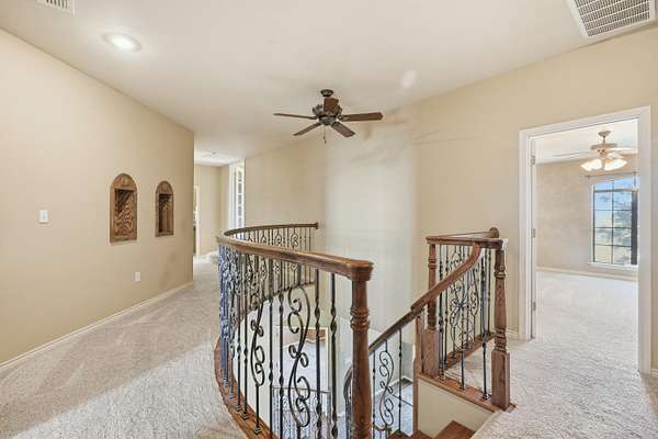 Incredible opportunity to own a horse property with 4 acres featuring a 5 bedroom home, a pool and a 2 bedroom guest house, along with a 5355 SF barn built in 2023; and an additional 1,500 SF shop with a man cave of about 360 SF. Upon entering you will notice the curved wooden oak staircase. Upon entering you will notice the curved wooden oak staircase and spacious dining room. The 2nd living room has a pull out bar area with beautiful handcrafted oak staircase. The office boasts a beautiful dome ceiling. The amazing kitchen has beautiful wood cabinetry and overlooks the spacious 2nd living area with a cozy fireplace. The primary bedroom has a double sided fireplace overlooking a large bath and shower. Upstairs you will find 3 bedrooms and baths and a bonus room and wet bar. This incredible home offers amazing woodwork throughout. Make this property yours today!