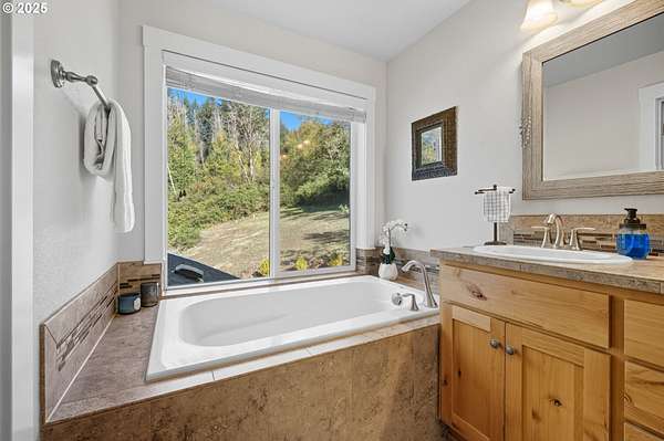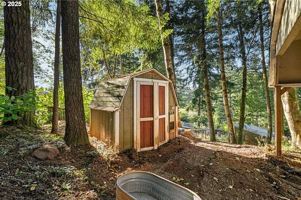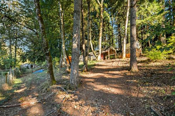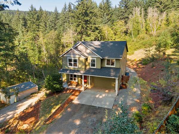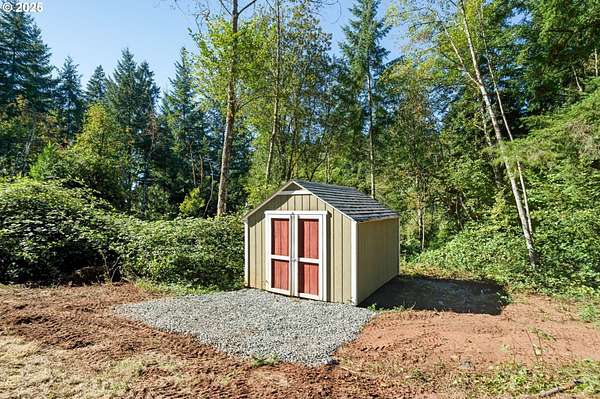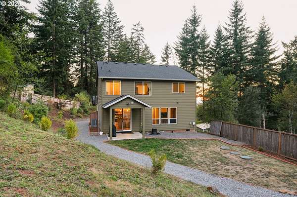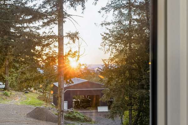 As you drive from the city to the country, your cares melt away - trees and beauty surround you, and the sound of nature and a creek greet you as soon as you pull up to this charming country home. Minutes from the stylish downtown Camas area for shopping and culture, Lacamas Lake for water sports & hiking, or golf courses and freeways, you are close to everything you need! With 2 barns, sheds, a shop, a chicken coop, and more, this is a perfect place to have animals or a garden and live off the land, park your toys, or both! The home itself has a fantastic covered patio with a pathway to a fire pit, surrounded by a rolling lawn and trees with a creek running through.The open kitchen flows into a family room and outside onto the patio, with an island and stylish cabinets. The rest of the main floor has an office, fun display areas, and a nook for a desk or a bar. This great floorplan has lots of storage and 4 spacious bedrooms upstairs with a lovely primary suite. All windows have views of greenery, and some have city lights.The property is divided into four main tiers: the top tier, designed for animals, includes a large barn (about 500 sq. ft.), a smaller barn (150-200 sq. ft.), a goat shed, a chicken coop, and a pole/hay barn.The main level features the house and a fire pit as the central gathering space. The third tier contains a wood storage shed and an earth path running from the front yard to the backyard, with a 12-15 ft. section showing some erosion where it's best to stay close to the rock wall. And the bottom section, the lowest part of the property, includes a large metal shed (about 350 sq. ft.), a forested area, and a dirt path connecting up to the third tier and back to the main level.