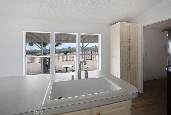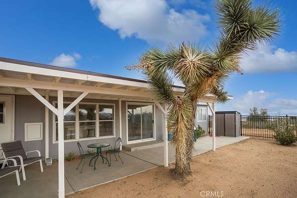 Manufactured home on permanent foundation situated on approximately 5 acres in Yucca Valley's West Flamingo Heights area. Built in 2000, this 3-bedroom, 2-bath home offers 1,573 square feet with a desirable split floor plan and high cathedral ceilings throughout.
