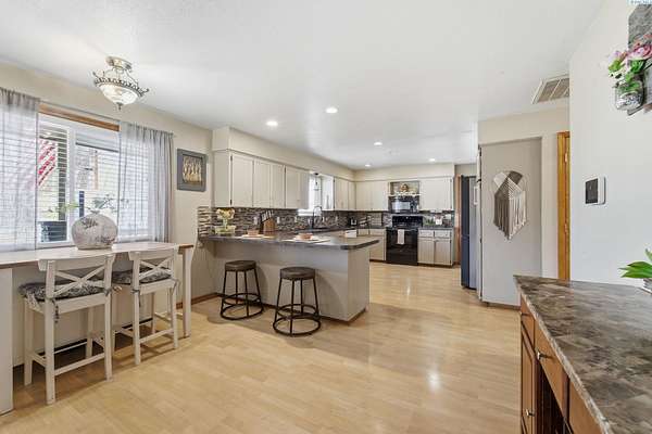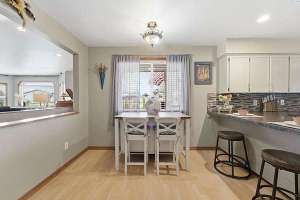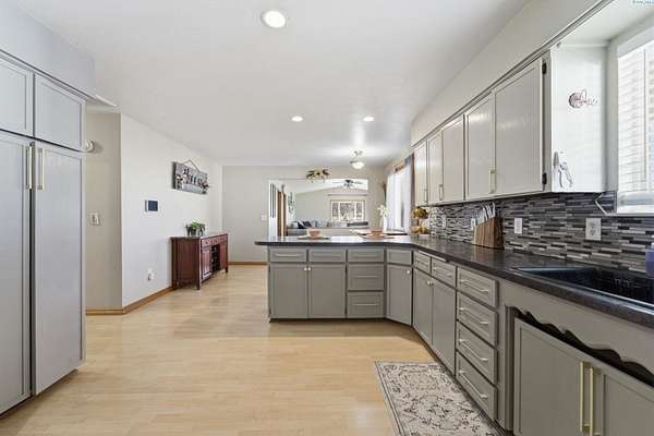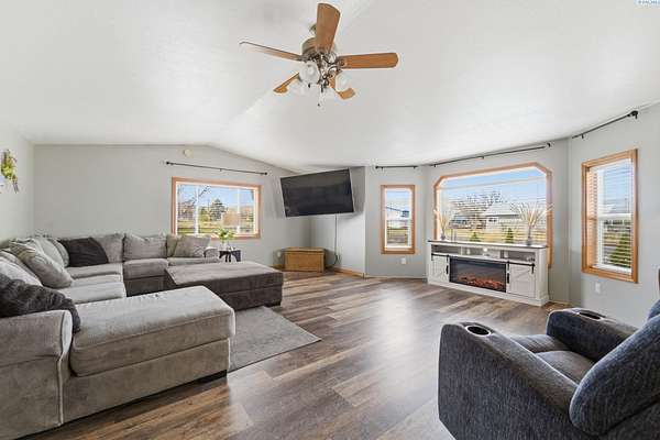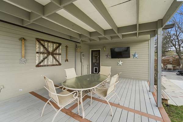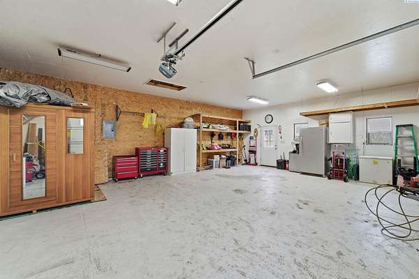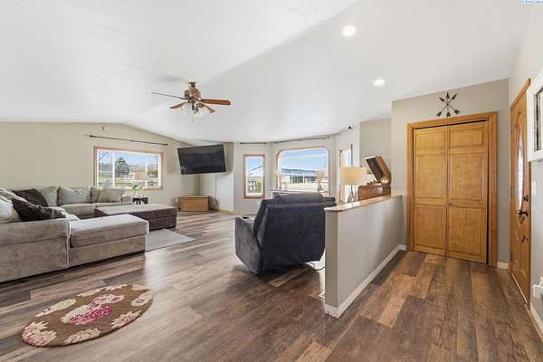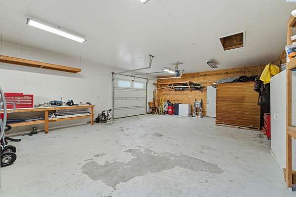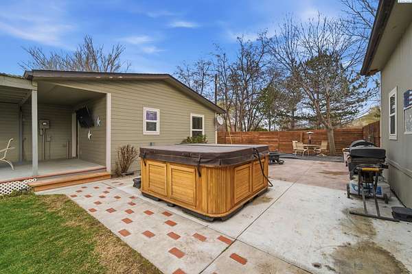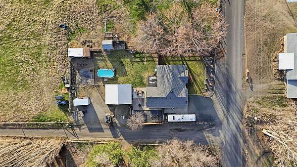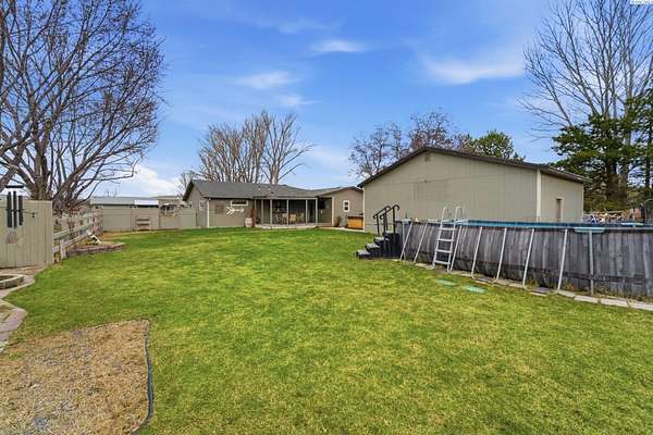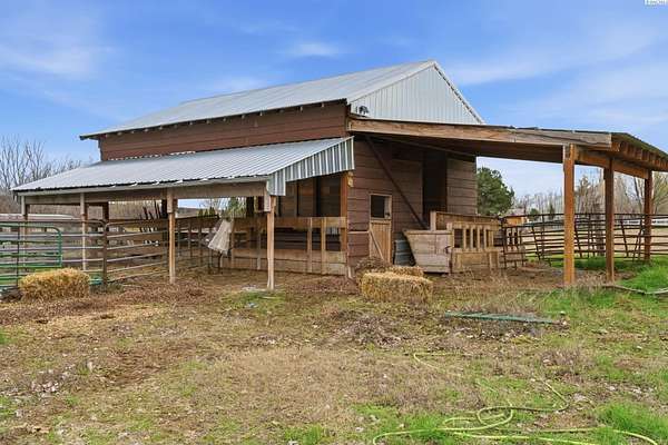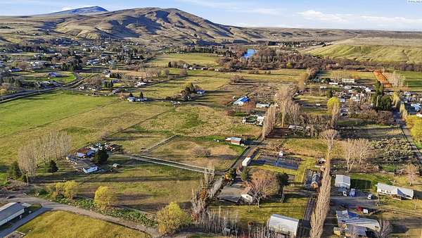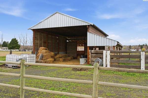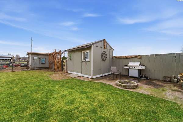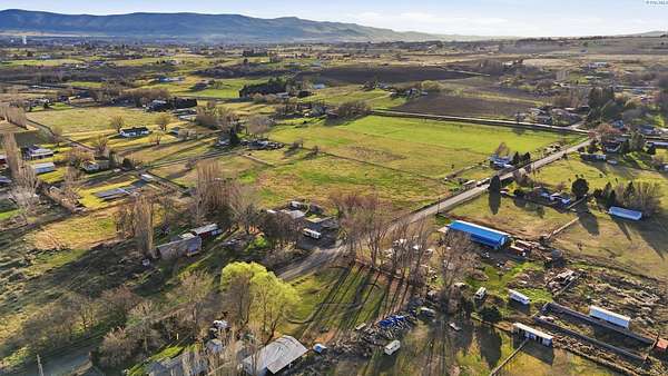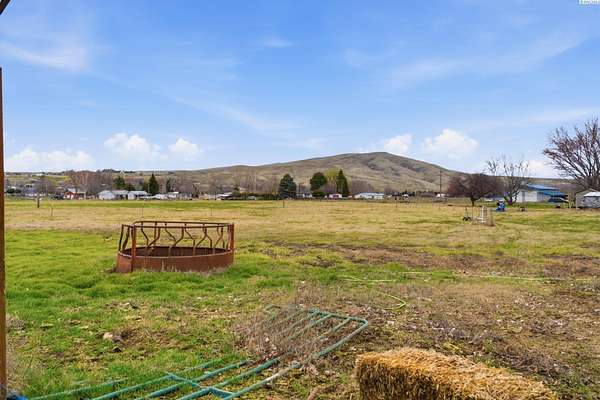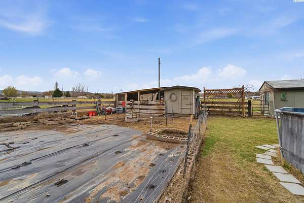 MLS# 290980 Don't miss this farm-ready homestead on 5 lush, Benton City acres! Now is your chance to secure this turnkey family farm or ranch with 20x28 barn, fully fenced pasture featuring solid set irrigation lines supplied by Kiona Irrigation Senior Water Rights, all on top of fertile soil known for it's abundant crop production. The charming 1953 built ranch style home provides a solid frame with modern updates including an open-concept kitchen, dining, and living space. Vaulted ceilings in the living space provide a welcoming space for entertainment or for just winding down after a long-days work. The split bedroom concept floor plan provides privacy between the primary and secondary bedrooms and also features a bonus room-den/office/flex space! Outside you'll enjoy multiple spaces to enjoy the fresh air whether it's the covered front porch to sit and sip your morning coffee or the back covered deck perfect for an ice cold drink of your choice on a hot day. The backyard offers endless possibilities for fun with a freshly cleaned above-ground pool, a chicken coop adjacent to a fantastic garden area, and multiple storage sheds/outbuildings for extra storage needs. The 24x32 insulated shop provides additional storage or workspace. Mature apricot, maple, and walnut trees, fire pit, BBQ area, and good ol' country living solidify this property as the 'farmstead' you've been looking for.