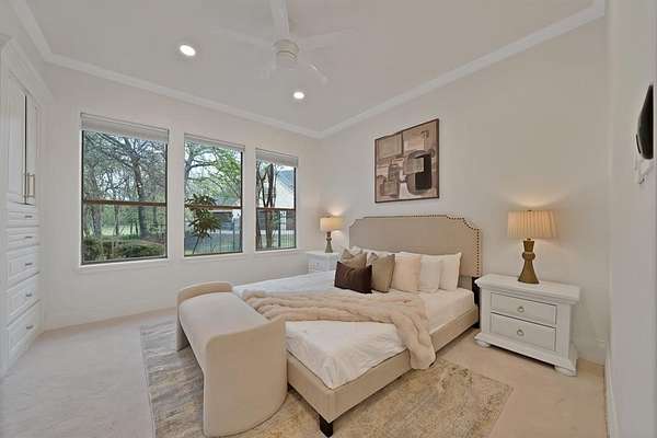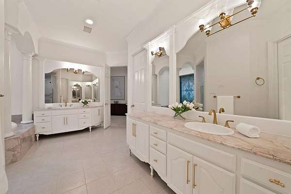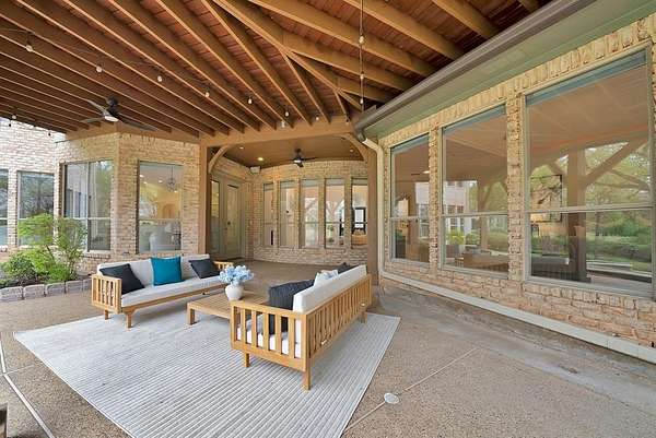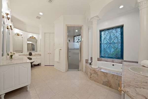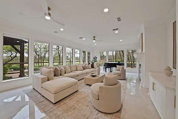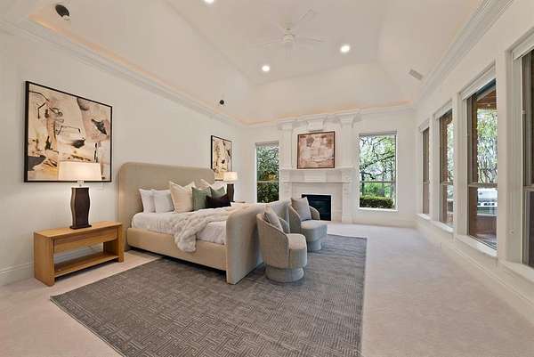 Architecturally grand and undeniably picturesque, this exceptional estate makes a statement at every turn. Nestled within the prestigious, 24-hour guarded gates of the Tour 18 community in Flower Mound, this home offers the perfect blend of luxury, privacy, and scenic beauty. Tucked away on a quiet cul-de-sac and ideally positioned between the 14th and 15th fairways of the renowned Tour 18 Golf Course, the setting is as remarkable as the home itself. Offering over 7,000 square feet of thoughtfully designed living space, this residence features 5 spacious bedrooms, 4 full bathrooms, and 2 half baths. From the moment you enter, you’re greeted by natural light, cathedral ceilings, and architectural details including custom built-ins, intricate trim work, and crown molding. The open-concept layout connects multiple living areas, each enhanced by its own fireplace, creating comfort and sophistication throughout. Recent updates include refreshed paint, updated flooring, upgraded bathrooms, and new countertops and backsplash in the kitchen—blending timeless design with modern finishes. The primary suite is a true retreat, offering generous space, a cozy fireplace, a private lounge area, and a luxurious ensuite designed for relaxation. A dedicated media room adds the perfect touch for entertainment. Step outside to your own private backyard oasis, surrounded by mature trees for seclusion. Enjoy a resort-style experience with a saltwater pool, hot tub, water features, and a fully equipped outdoor grill area. A private deck provides breathtaking golf course views. Additional highlights include a 4-car garage and a drive-through carport. Located within Argyle ISD and just minutes from Liberty Christian School, DFW Airport, Texas Motor Speedway, plus premier dining and shopping, this home offers luxury and convenience in one extraordinary package.