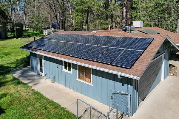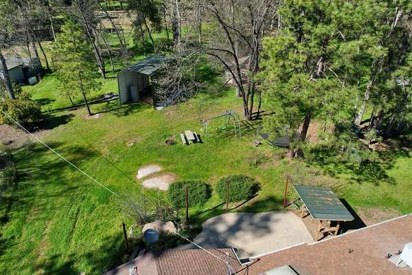 Tucked at the end of a quiet cul-de-sac in the highly desirable Lush Meadows subdivision, this incredibly charming property offers the perfect blend of privacy, usability, and lifestyle. Set on approximately 2.25 acres of gently rolling land, the setting is truly specialdotted with a beautiful mix of mature pines and oaks, a tranquil pond at the front of the property, and inviting outdoor spaces that make you feel right at home. The residence features approximately 1,489 square feet with 3 bedrooms, 2 bathrooms plus an office, and a warm, welcoming interior anchored by a cozy fireplace. Owned, roof-mounted solar adds valuable energy efficiency and long-term cost savings, complementing the home's thoughtful features including a covered entry and covered concrete patio . For those who love to garden or embrace a more self-sustaining lifestyle, the fenced garden area with rare roses and a greenhouse is a true standout plus there is a beatiful pond and fruit trees. Additional improvements include a detached garage, storage/shop space, and woodshedproviding excellent functionality and flexibility . Located within the Lush Meadows community, residents enjoy access to two private lakes, a clubhouse, and well-maintained paved roads. While short-term rentals are not permitted, the community allows mid- and long-term rentalssupporting a more peaceful, neighborhood-oriented environment that makes this an exceptional place to call home full-time or enjoy as a retreat. Conveniently located near local favorites like Sierra Cider, scenic hiking trails, and just a short drive to Yosemite National Park, this property offers the best of both everyday comfort and outdoor adventure. If you've been searching for charm, usability, and a true sense of communitythis is one you won't want to miss.