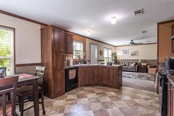The 3-bedroom, 2-bath doublewide manufactured home boasts an open floor plan, a bright eat-in kitchen, spacious living areas, a welcoming front porch, and a side covered deck perfect for relaxing or entertaining.