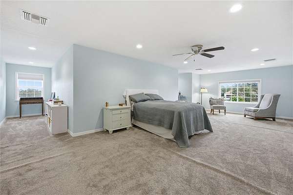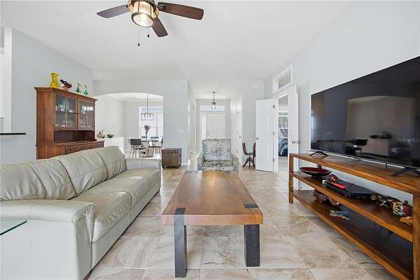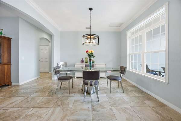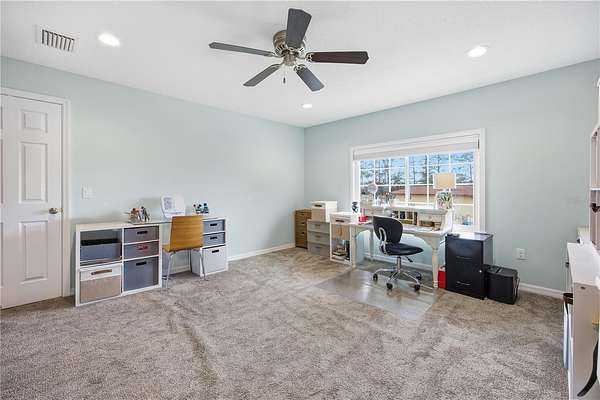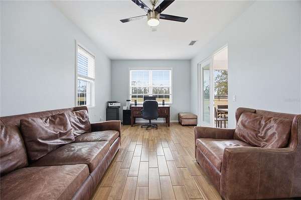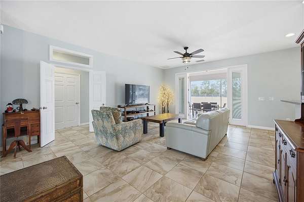 Positioned on one of the highest elevations within Saddle Ridge, this property captures sweeping views of the Saint Johns Preserve and the Ocala National Forest. The protected landscape enhances both privacy and long-term value, offering an unmatched sense of openness and natural beauty from your own front porch.