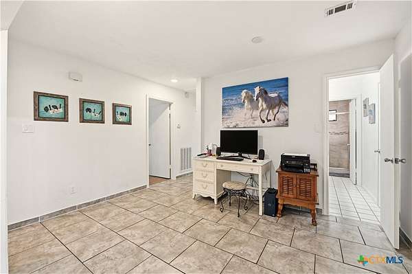 - All Bedrooms Down, Breakfast Area, Breakfast Bar, Ceiling Fans, Chandelier, Double Vanity, Eat In Kitchen, Entrance Foyer, Home Office, Main Level Primary, Pantry, Primary Downstairs, Recessed Lighting, Separate Shower, Solid Surface Counters, Walk In Closets