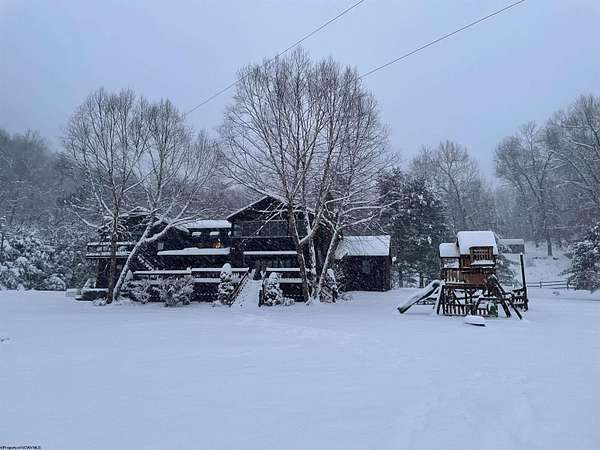 Spacious 4 bedroom, 2.5 bath home on 10.84 flat, useable acres with breathtaking views just minutes from Elkins. Quality construction throughout featuring hardwood floors, stone fireplace, custom kitchen & solid wood doors & trim. Offers 3 bonus rooms ideal for office, gym, rec room or additional living space, plus an attached garage, full basement & large composite deck for outdoor entertaining. Property includes a pond, 4-stall barn with hay loft, additional building with workshop/garage/equipment storage, and a chicken coop, making this an excellent horse or hobby farm property. Rare combination of privacy, character, views, and functional farmland close to town.