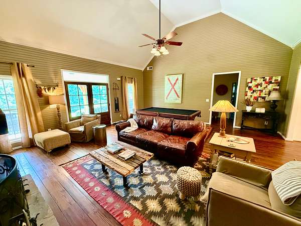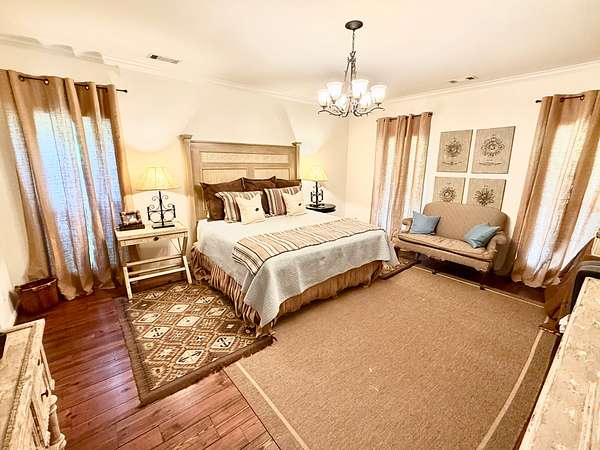 The Barn is a perfect place to store a side by side or other equipment. Equipped with 4 horse stalls, fans, and all the essential features needed to provide high quality equestrian care are provided. There are approximately 8 acres in fenced pasture with multiple access gates.