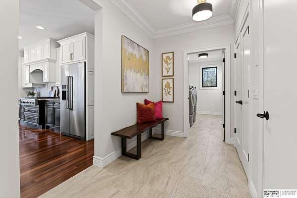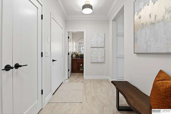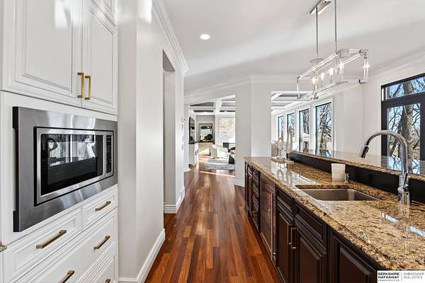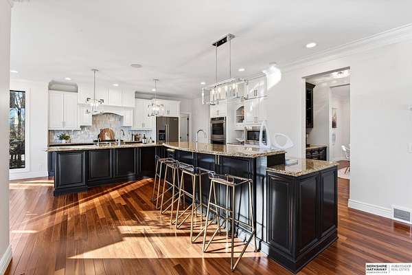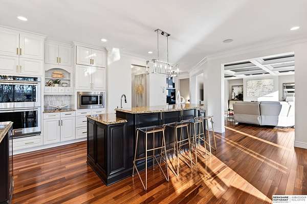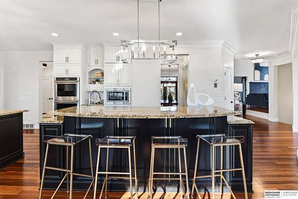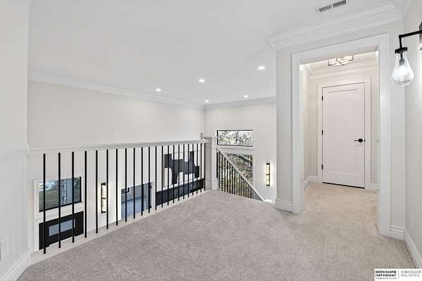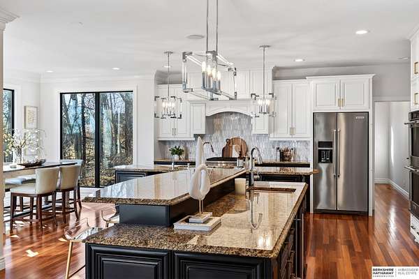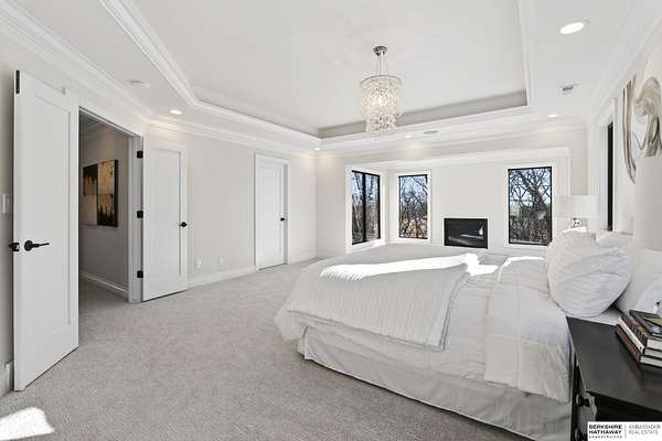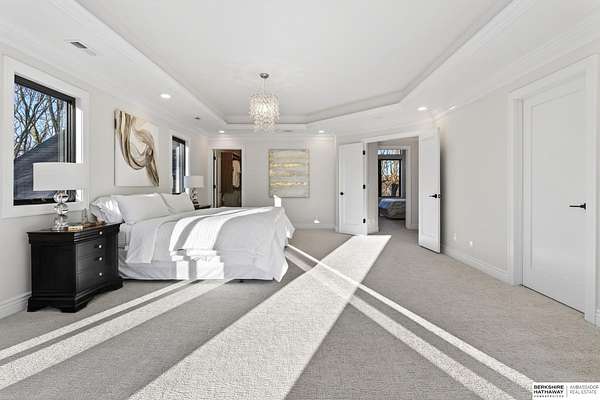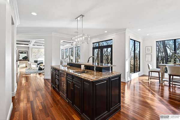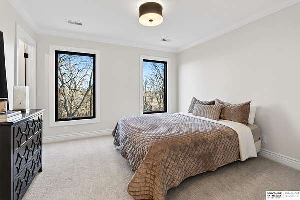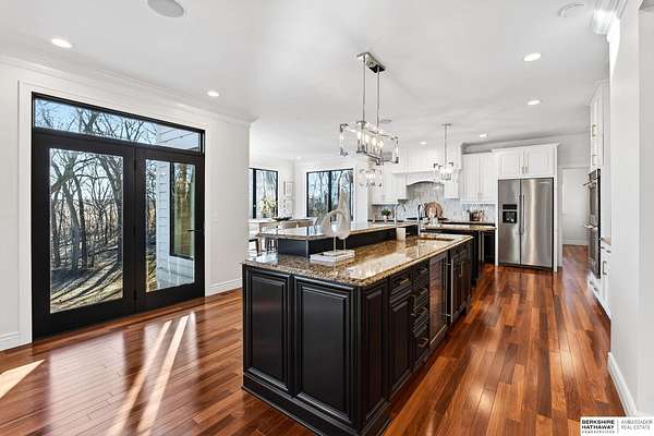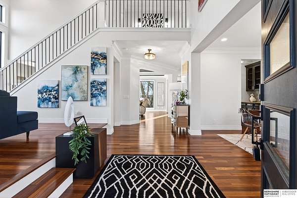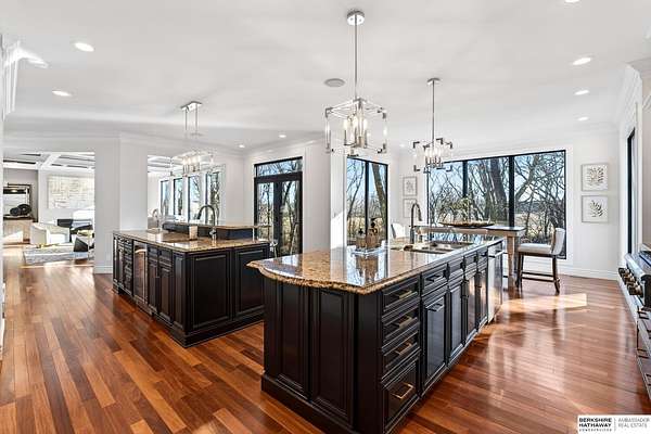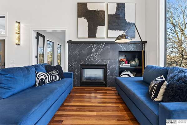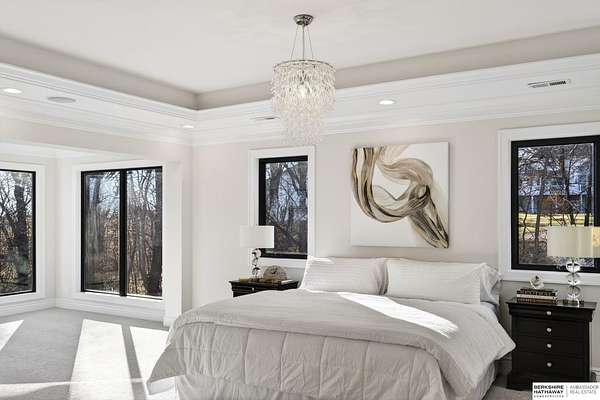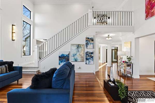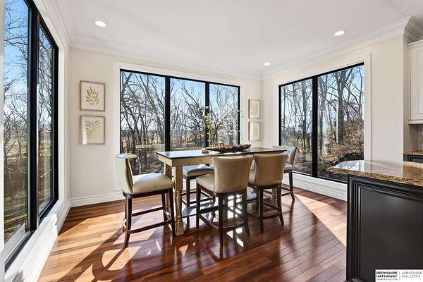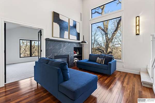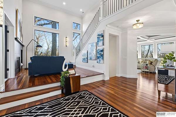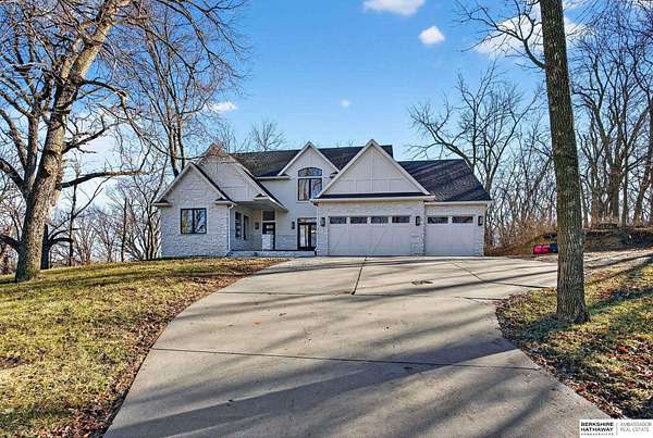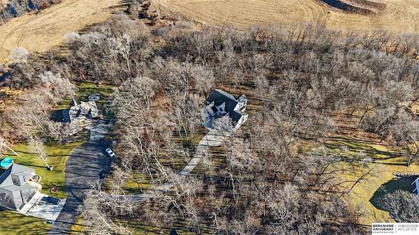 Debbie Meyer, M: 402-320-7916, Debbie.Meyer@bhhsamb.com, https://www.debbiemeyerrealestate.com - Luxury living in the Loess Hills of Glenwood on 2.05 acres atop a hill at the end of a cul-de-sac. A tree-lined driveway leads to this private, light-filled home featuring stunning large windows throughout, flooding every room with natural light and showcasing serene treed views and wildlife. A grand two-story entry, soaring ceilings, Cumaru Brazilian Chestnut floors, and a gourmet kitchen define the main living spaces. The home has three fireplaces, including one two-sided opening to the main level sitting room and office. Primary suite features a beautiful all-window sitting room with fireplace. All bedrooms offer en suite bathrooms and walk-in closets. Primary bathroom and basement are unfinished - blank slates ready for your vision. Major updates include windows, roof, and HVAC within the last 2 years. A rare blend of privacy, nature, and luxury just minutes from town.