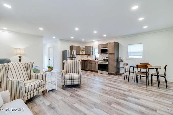 PRICED UNDER APPRAISAL (Feb 2025) Includes income producing guesthouse. Main home and gueshouse are beautiful, newly, and fully remodeled home. Both were redesigned and updated with no lack of detail. The owners intended for this to be their forever home, but plans changed and now you get the benefit. The custom kitchen of the main home was meticulously designed with antique doors and beams, a huge island, gorgeous quartzite countertops, stunning designer backsplash, and custom cabinets which is open to the large dining room. Built-in cabinetry, open shelving and a cozy window bench niche anchor the dining and kitchen. The primary en suite includes separate closets, double vanity, and the laundry room. The original wood ceilings have been exposed and sealed to perfection paired with a mix of original oak wood floors and luxury vinyl planks in the high traffic areas. Every inch of this home and guest house down to the cabinet hardware was thought out and completely renovated. Through the spacious den and off the back porch you will overlook the large backyard, mature twin oaks that are hundreds of years old, and then the Bayou Teche. Also found on the property are pecan, fig, satsuma, and lemon trees. The property has a separate storage building and the detached 600 sq ft newly renovated guest house. The guest house includes a full kitchen, living, dining, one bedroom, and bathroom with laundry hook-ups. This would be perfect as a guest house, in-law suite, apartment, or separate office. Currently, the guesthouse has a tenant lease agreement until 9/30/2025. Both homes are basically brand new. Schedule your showing today. You do not want to miss this one. * Also available for lease *Neighboring lot is also available for sale. See 5605 Sugar Oaks Rd, New Iberia for more