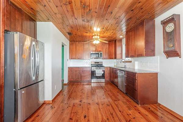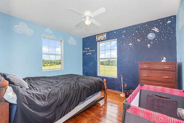 Listed below appraised value! Nestled on 5.6 serene acres in Farmersville, this charming country home offers privacy and character. Enjoy rustic elegance with custom wood flooring and ceilings, plus a fully remodeled kitchen (2024) featuring quartz countertops, new stove, and dishwasher. Recent updates include HVAC 13 SEER (2022), steel roof on house & barn (2023), water heater (2023), PEX plumbing (2023), full downstairs & 3-bath remodel (2024), and fresh interior paint (2024-25). Relax on the covered front porch, or utilize the 24x36 workshop with basement and 2-bay garage. A large storage building and a scenic 20-ft pond complete this perfect country retreat.