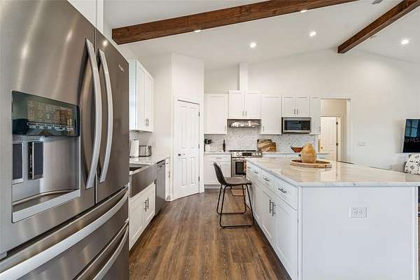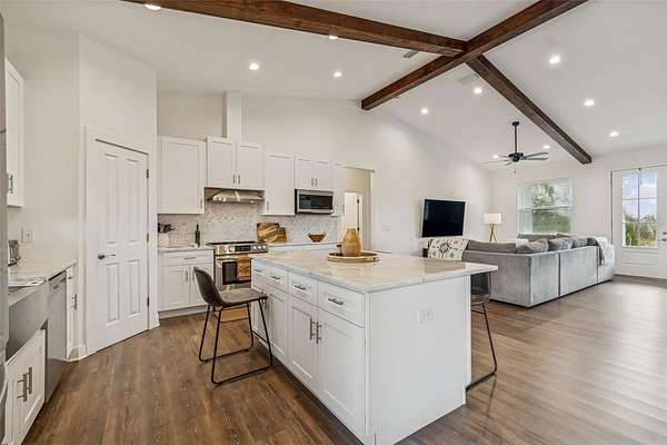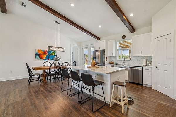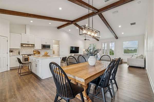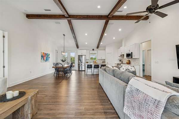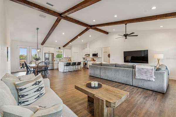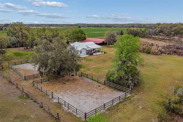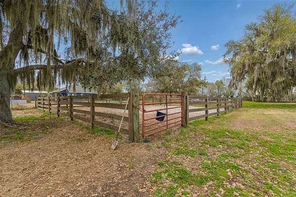 Welcome to this amazing find in Plant City! This beautiful 4 bedroom, 2.5 bathroom home sits on a picturesque 5-acre property that must be seen to be fully appreciated. As you arrive through the gated private driveway, you are greeted by a sprawling yard filled with mature trees and a serene, park-like setting. The home is move-in ready built in 2022 to the highest standards with a metal roof, impact windows, and energy efficiency throughout. Inside, the open concept layout with high vaulted ceilings creates an airy, bright atmosphere perfect for entertaining. The split bedroom plan provides privacy and functionality for families. The kitchen is beautifully appointed with solid wood cabinetry, granite countertops, and stainless steel appliances. Open wood beams, 6" baseboards, and high end luxury wood vinyl plank flooring add to the appeal. The bedrooms are spacious and the bathrooms are highly appointed. Step outside and the property continues to impress. Fully fenced and gated with 2 separate pastures it is set up for horses and livestock. The professionally built barn is huge at 74X66 and includes all you could ever need for your equestrian estate. Set up with 3 stalls now but room for 10 the possibilities are endless. This home and property offer the perfect blend of privacy, serenity, and opportunity. Whether you’re seeking a peaceful country lifestyle, space for hobbies and agriculture, or a property with income potential, this gem delivers it all. Come experience the tranquility of this Plant City retreat. Conveniently located only 10 minutes from Historic Downtown and an easy 30 minute commute to Tampa.