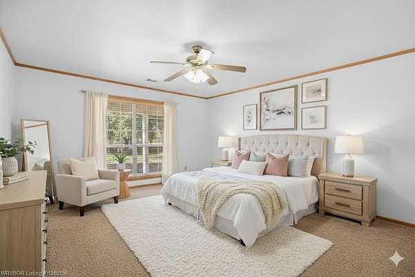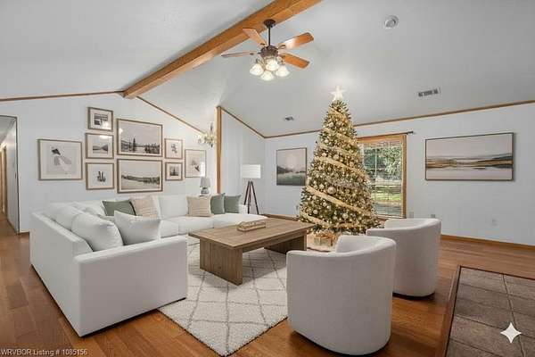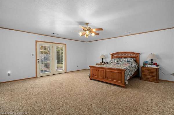 Escape the city limits without sacrificing convenience! From peaceful mornings on the porch to summer days by the pool, every inch of this property invites you to slow down and enjoy the good life. This truly spacious and beautiful home sits on a private 4.95-acre estate, offering the peace of country life while being just a 20-minute drive to the heart of Fort Smith for shopping, dining, hospitals and more! The interior is defined by a sprawling main living area, featuring a cathedral ceiling, engineered wood flooring, and a brick Country Flame Fireplace that provides ducted blowers on an individual thermostat. The well-appointed kitchen showcases an abundance of cabinetry, exquisite granite countertops, stainless appliances, bar seating, a large dining area, and a walk-in laundry room. The oversized primary suite serves as a true sanctuary, complete with a generous walk-in closet, an ensuite bathroom featuring a jacuzzi tub and a separate walk-in shower with glass doors, and a flex space suitable for a second walk-in closet, home office, fitness nook, etc. The two secondary bedrooms are notably spacious with great closet space, offering plenty of room for family or guests. The property incorporates an oversized 33'x33' detached garage with dedicated safe room with toilet and sink, and several outbuildings, to include a substantial 40'x60' shop equipped with a new roll-up door, new concrete slab floor, and electrical, perfect for a business, hobbies and storage needs. Outdoor amenities feature a fenced in-ground pool with a newer 2024 liner from Burton, wrap-around porch offering panoramic mountain views, and natural elements - a small creek bordering the rear boundary and fully functioning water well. HVAC, roof and gutters are 2024. If you've been dreaming of space, privacy, and country views without giving up convenience, this property has it all! This home isn't just a place to live - it's a place to love. Call your favorite realtor to schedule a showing today.