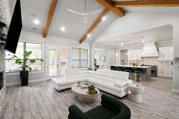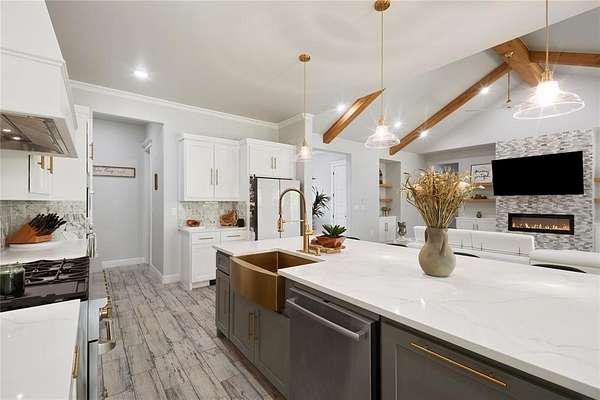 - Built-In Wine Cooler, Cable TV Available, Dry Bar, Eat-In Kitchen, Flat Screen Wiring, Granite Counters, High Speed Internet Available, Kitchen Island, Natural Woodwork, Open Floorplan, Pantry, Smart Home System, Sound System Wiring, Vaulted Ceiling(s), Walk-In Closet(s)