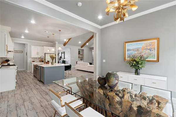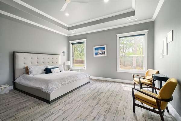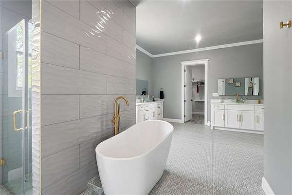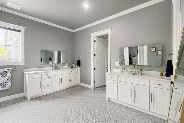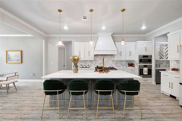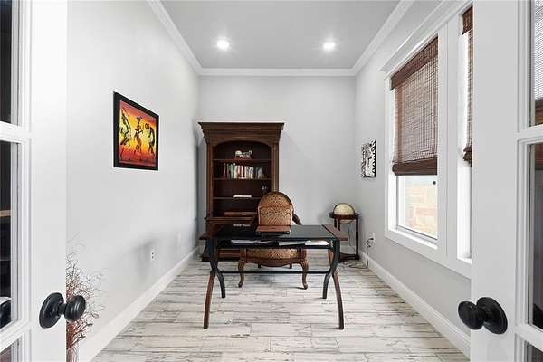 Make a grand first impression through striking custom iron double doors, setting the tone for the elevated finishes found throughout. Inside, soaring 8-foot interior doors and intricate custom millwork and molding create a sense of scale and sophistication that simply cannot be replicated in a production build. Premium tile flooring flows throughout, adding both beauty and durability underfoot.