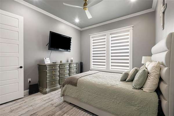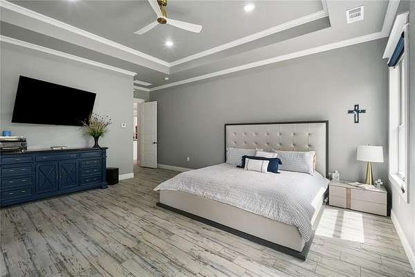 Entertaining reaches new heights, literally, with a second-story game room offering the perfect escape for family and guests alike. The fun continues outdoors with a covered patio wired with an integrated audio system, which flows seamlessly through the game room and living room as well. A comprehensive camera security system provides peace of mind inside and out, while the oversized 3.5-car garage features double-insulated doors with integrated camera-enabled smart openers.