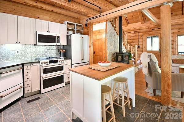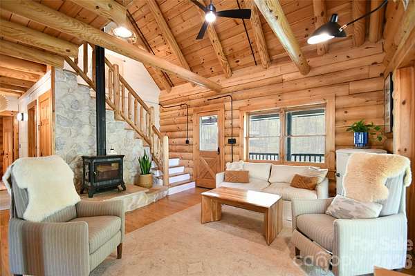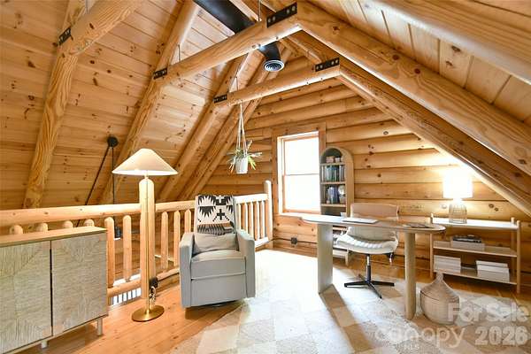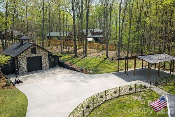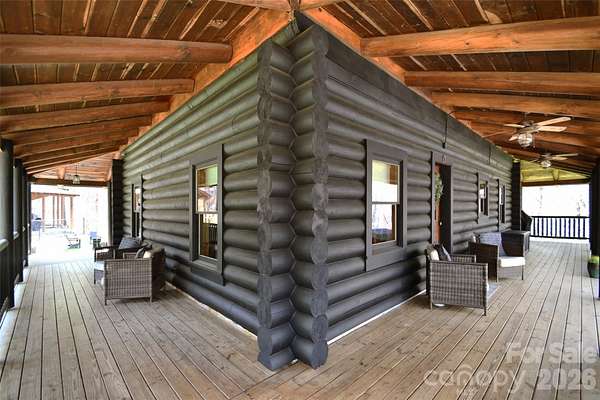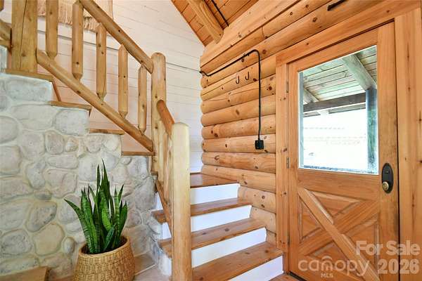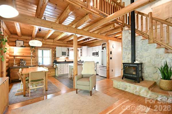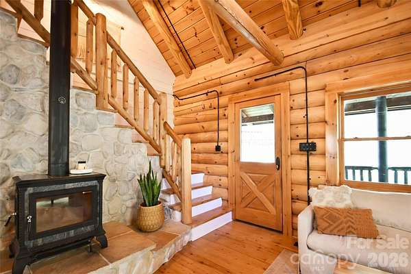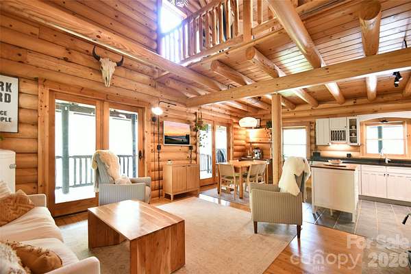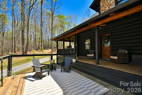 Tucked away on over 13 acres of pristine woodland, this extraordinary custom-crafted modern log estate offers a rare fusion of timeless craftsmanship and refined, modern comfort. Built by renowned log home artisans, this 3-bedroom, 2-bath residence is a masterclass in authentic mountain-inspired living-where every detail has been thoughtfully designed to elevate both form and function. Constructed with striking 10-inch Swedish Cope white pine exterior walls and complemented by rich 8-inch yellow pine beams, rafters, and purlins, the home exudes warmth, character, and enduring quality. Beneath it all, a Superior Wall insulated foundation ensures lasting efficiency and structural integrity. Inside, the open-concept great room and kitchen create an inviting space ideal for both intimate evenings and effortless entertaining, while distinctive industrial accents add a sophisticated edge. The primary suite is a true retreat, featuring a spa-inspired bath with a Jacuzzi tub, complemented by a loft. Step outside and experience the essence of elevated country living. A sweeping wraparound porch invites peaceful mornings and golden-hour sunsets among the fruit trees, while the outdoor hot tub offers a private sanctuary beneath the stars. The beautifully designed barn-style garage, additional carport, and 12x12 outbuilding provide both charm and versatility. There are private ATV trails and a beautiful creek running through the woods of the property. Despite its serene, secluded setting, this property is ideally located just minutes from the Catawba River and Lake Norman, as well as the charm of the Village of Catawba, historic Murray's Mill, and the covered bridge. Vibrant downtown Statesville-with its boutiques, dining, and live music-is also just a short drive away. This is more than a home-it's a destination. A place where nature, craftsmanship, and lifestyle converge into a daily escape unlike any other.