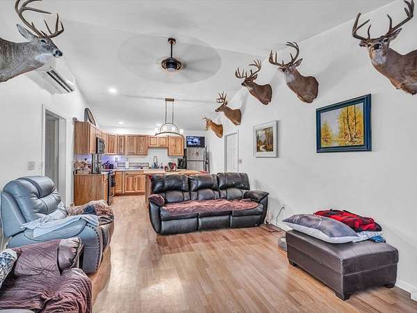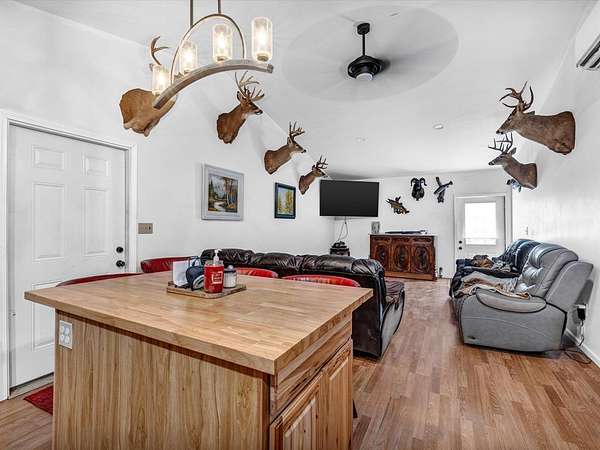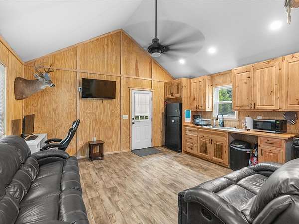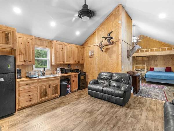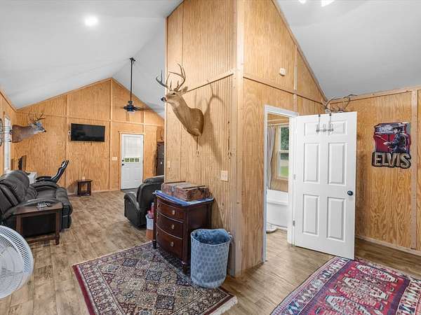 Welcome to an exceptional sportsman retreat nestled in the heart of Muhlenberg Co. this recently surveyed 580-acre property is an expansive tract that present a unique fusion of habitat types , meticulously tailored to cater to whitetail deer, turkey, waterfowl, and fishing enthusiasts. It also includes a barndominum that offers 2 bed and 1 bath with open concept living and kitchen. The remaining portion serves as garage with ample storage and two overhead garage doors. Also there is a cabin that overlooks one of the beautiful lakes. It is complete with kitchenette and bath that sleeps up to 6 guests. This cabin serves as an ideal retreat for visitors or as an income producing Airbnb. On the northwest side discover 130 acres of open water and flooded timber, providing an idyllic setting for waterfowl hunting. The southeast portion of the property features timbered landscape and rolling terrain, perfect for strategic hunting options. Call Chad Cunningham for your tour. 270-875-5454