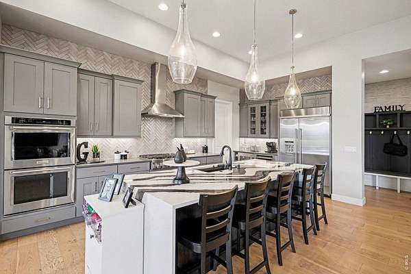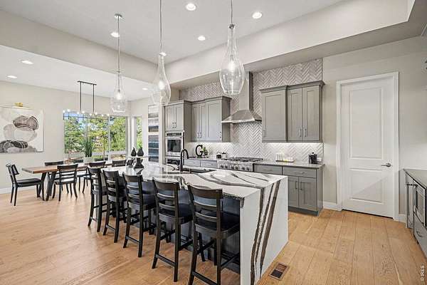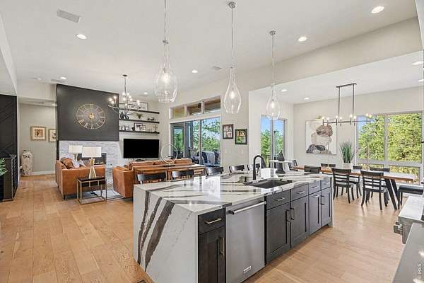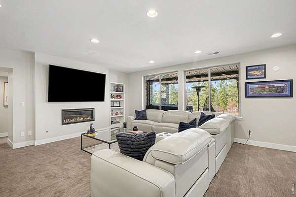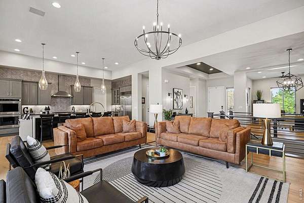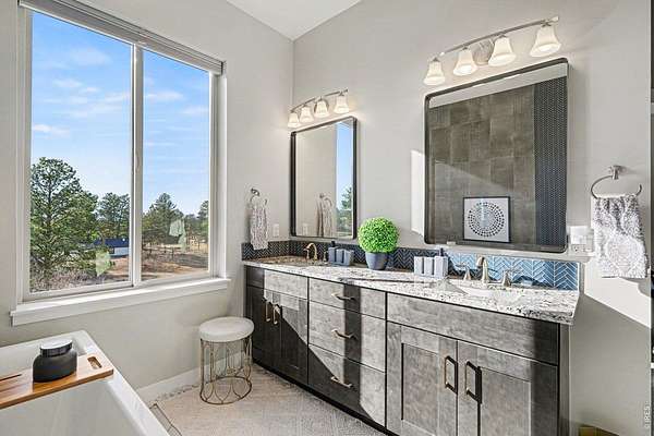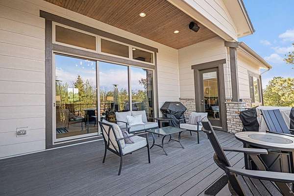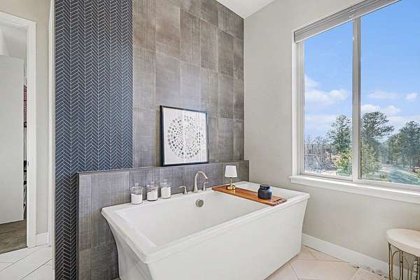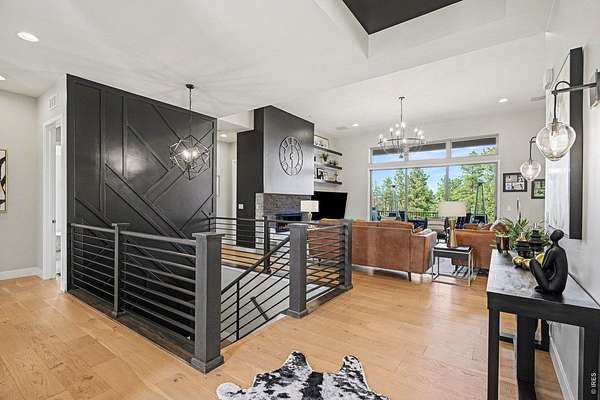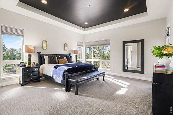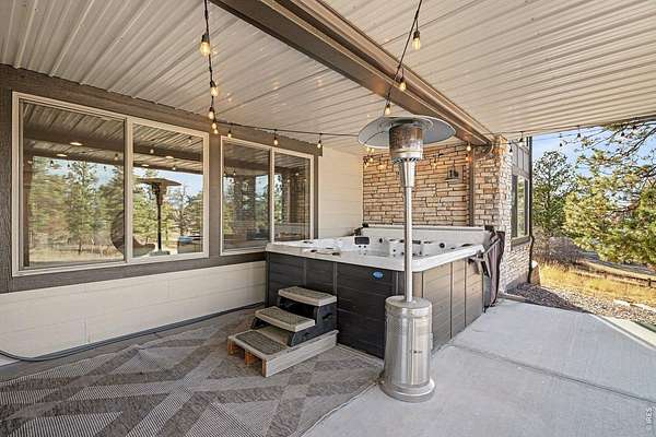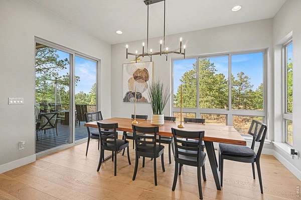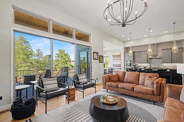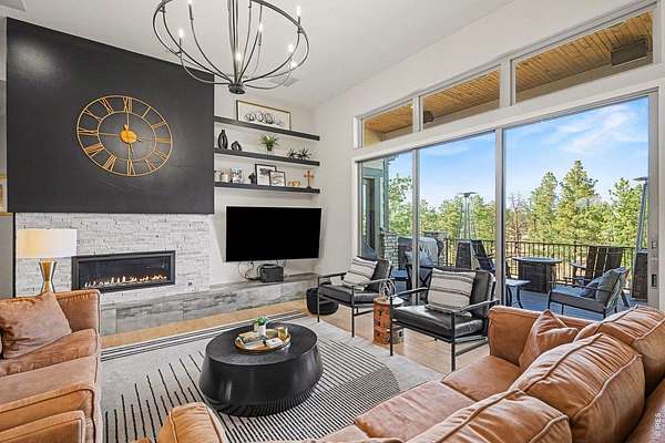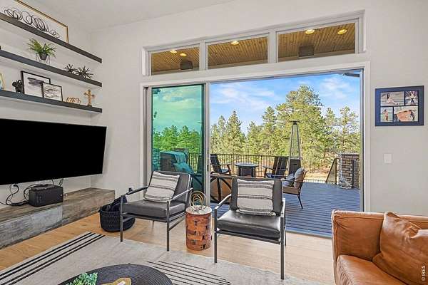The largest lot offered in The Timbers in over four years-an exceptional 1.63-acre mountain contemporary retreat. Built in 2020, this custom home sits at the end of a 330-ft south-facing driveway within an exclusive 26-home community surrounded by mature 50-ft pine trees. A rare oversized heated 4-car garage with 220V service and epoxy floors provides space for vehicles and toys. Inside, soaring 12-ft vaulted ceilings, luxury engineered hardwood floors, and a multi-panel California sliding door create seamless indoor/outdoor living with mountain views, mature pines, and Colorado wildlife. The gourmet kitchen features a Cambria quartz waterfall island, KitchenAid appliances, 6-burner gas range, double ovens, beverage fridge, walk-in pantry, and abundant cabinetry. The main-level primary suite offers outdoor access and a spa-like 5-piece bath. Walkout basement includes rec space, bedroom, full bath, covered Dry-Below patio with hot tub, plus 1,193 unfinished sq ft for storage, gym, or expansion with wet bar stubbed in.