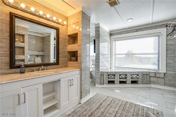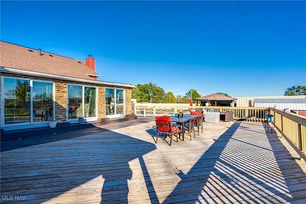 Welcome home-an entertainer's paradise offering 4,765 sq/ft of living space nestled on five sprawling acres of land! The front of the home features a beautiful living room with a neutral carpet, knotty pine walls, and an open flow to the foyer. Hardwood flooring extends from the foyer into the dining room. The heart of the home is the eat-in kitchen that boasts a large island, granite countertops, and an eat-in area. Completing the kitchen is the pantry, and access to the 1/2 bath. Off the kitchen, you'll find one of the family rooms that features vaulted ceilings and a gas fireplace. Relax year-round in the four-seasons room/additional family room with its own fireplace and sliders leading to the covered deck. Additional entertainment spaces include a dedicated bar room and an additional enclosed back porch with sliders. Upstairs, discover the Primary Suite featuring an electric fireplace and a lavish bathroom with two separate vanities, a jetted tub, a shower, and beautifully tiled walls and floors. For added convenience, laundry hookups are available in the primary bath. Rounding out the second floor are two bedrooms that share a hall full bath plus a large walk-in closet. The basement is finished with ceramic tile throughout, offering flexibility with two finished bonus rooms. A full bathroom is also located in the basement. The outdoor amenities are the highlight of this beautiful property, creating a resort-like experience right at home. The showpiece is the 18 x 36 inground pool. Enjoy peace of mind with a newer liner, heater, filter, and pump. The pool area features a large concrete patio, a relaxing gazebo (wired for a hot tub), and a dedicated pool house/pole building for storage. Park with ease in the 3-car attached garage with tons of storage, plus an extra concrete pad for additional vehicles. Plus, you are minutes from highways, Petros Lake Park, and amenities. Don't miss your chance to see this beautiful property; schedule your showing today!